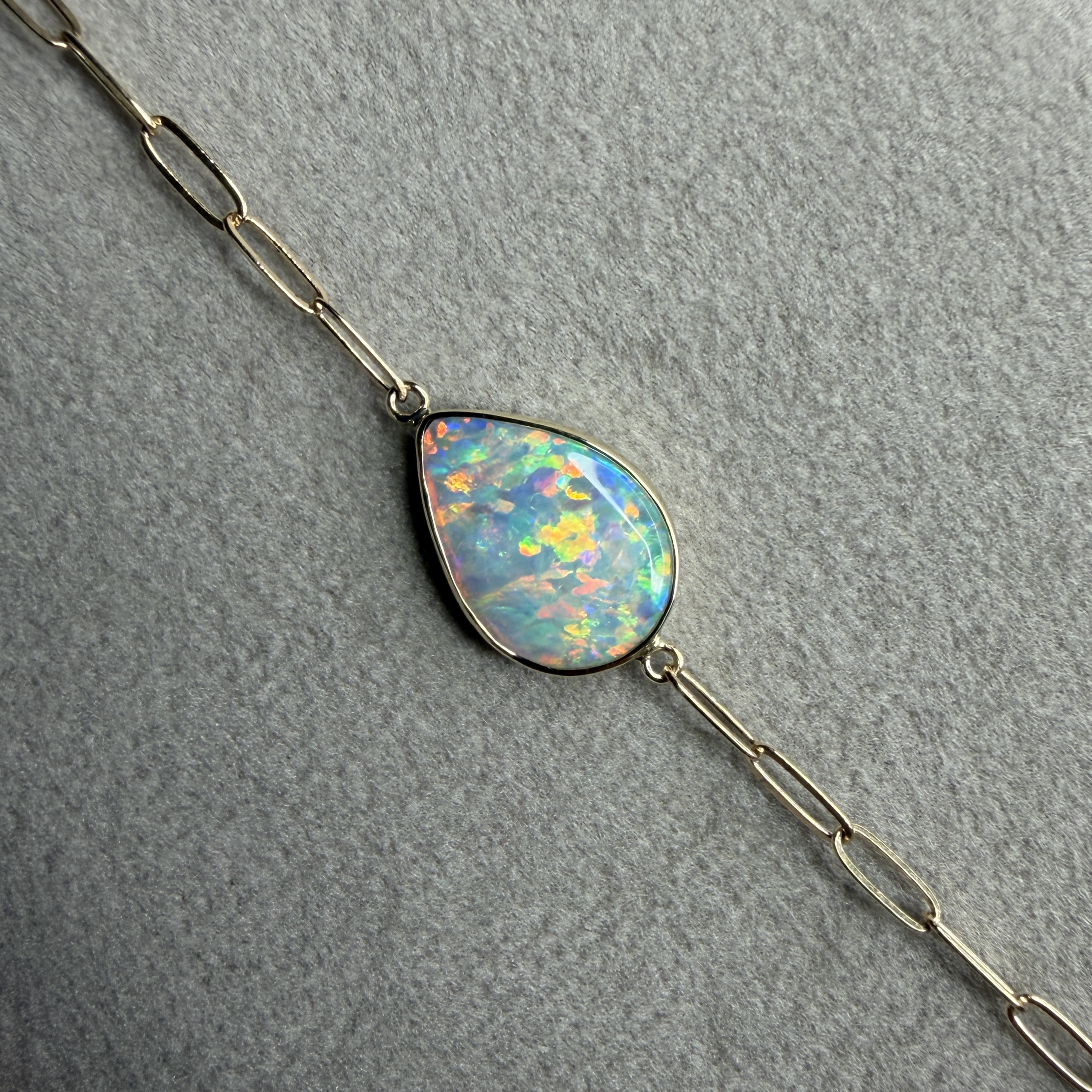 14K Yellow gold paperclip bracelet with Australian Crystal Opal ✨ Available on our website