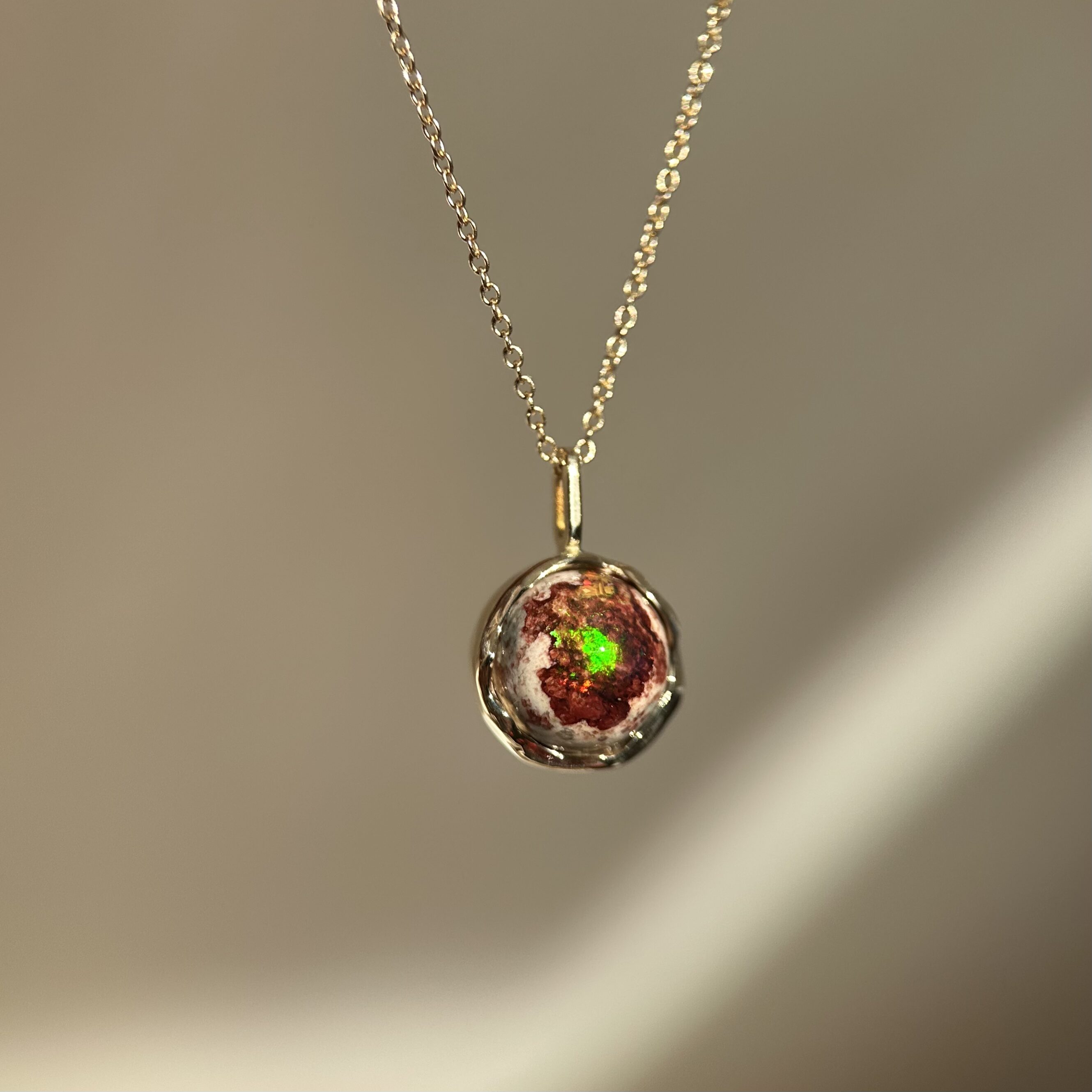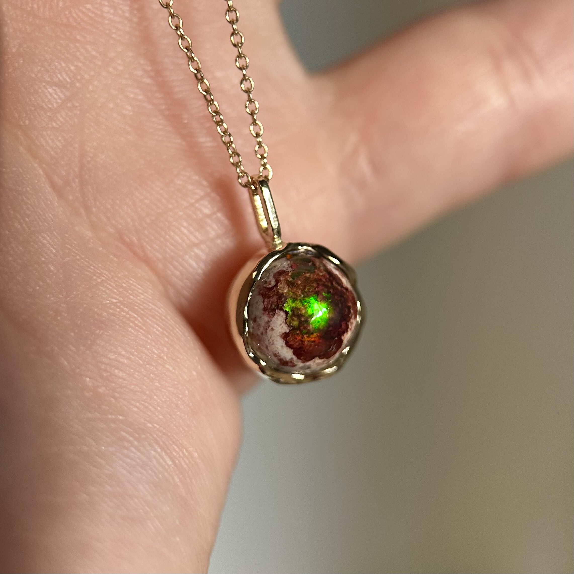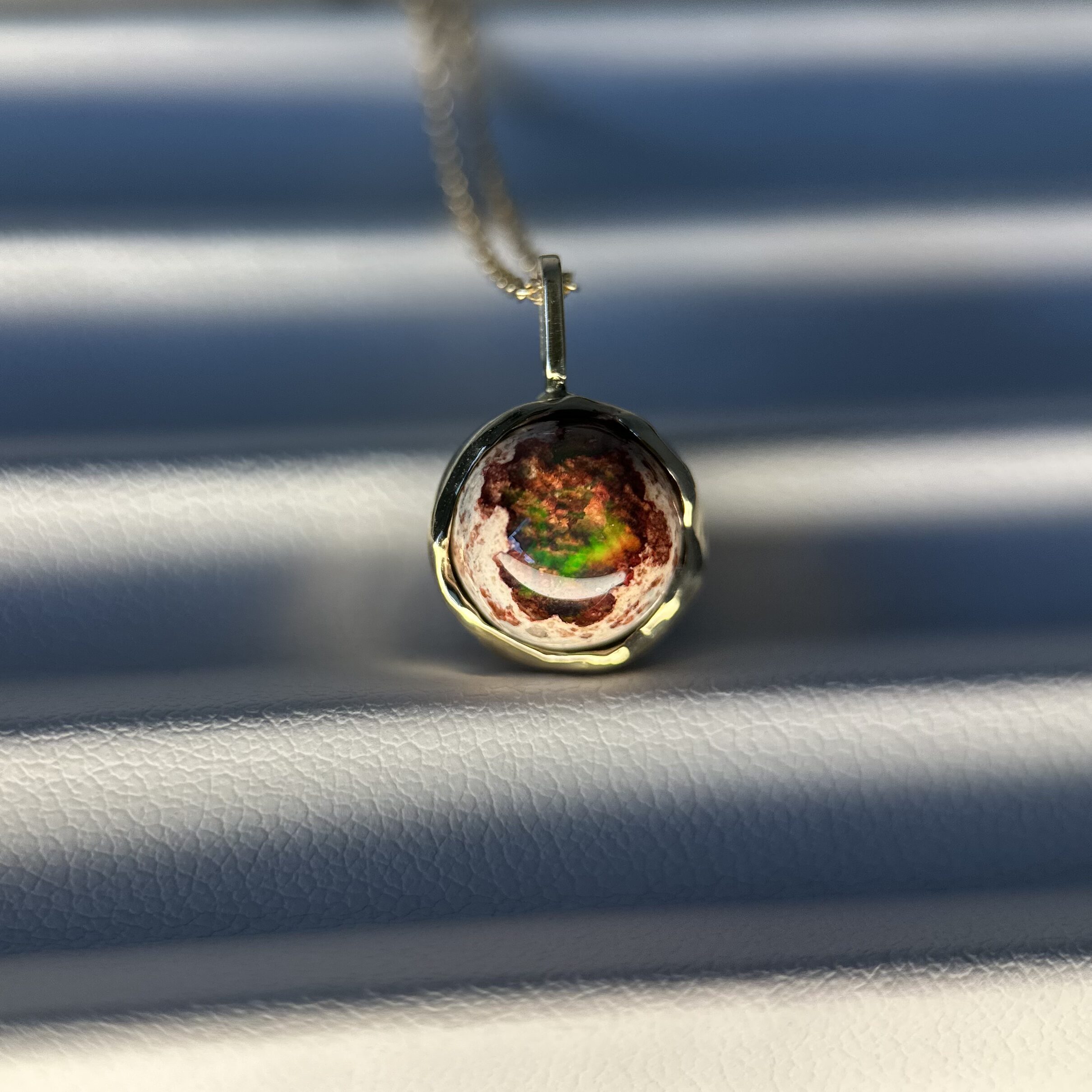 14K Molten Yellow gold pendant with Mexican Cantera Opal