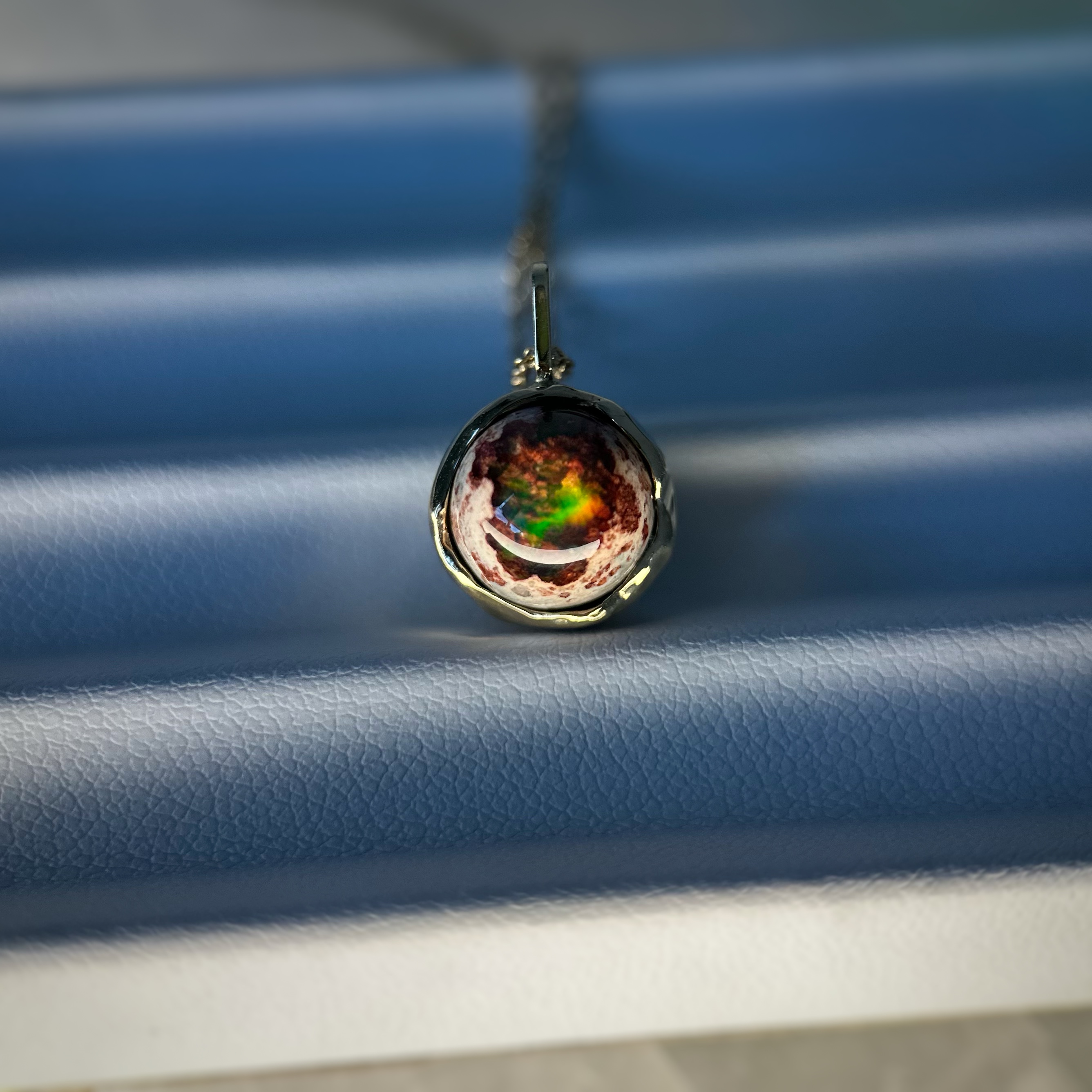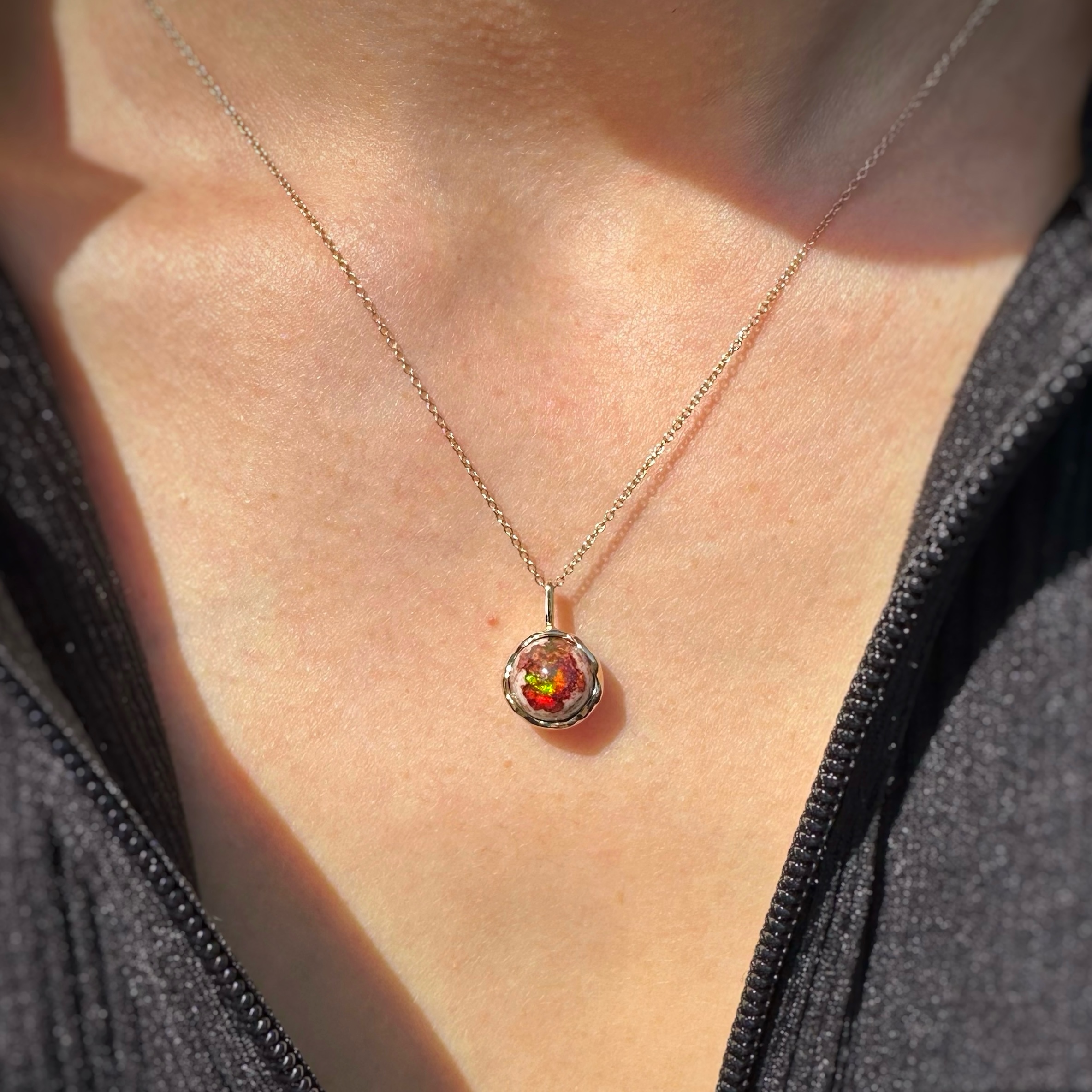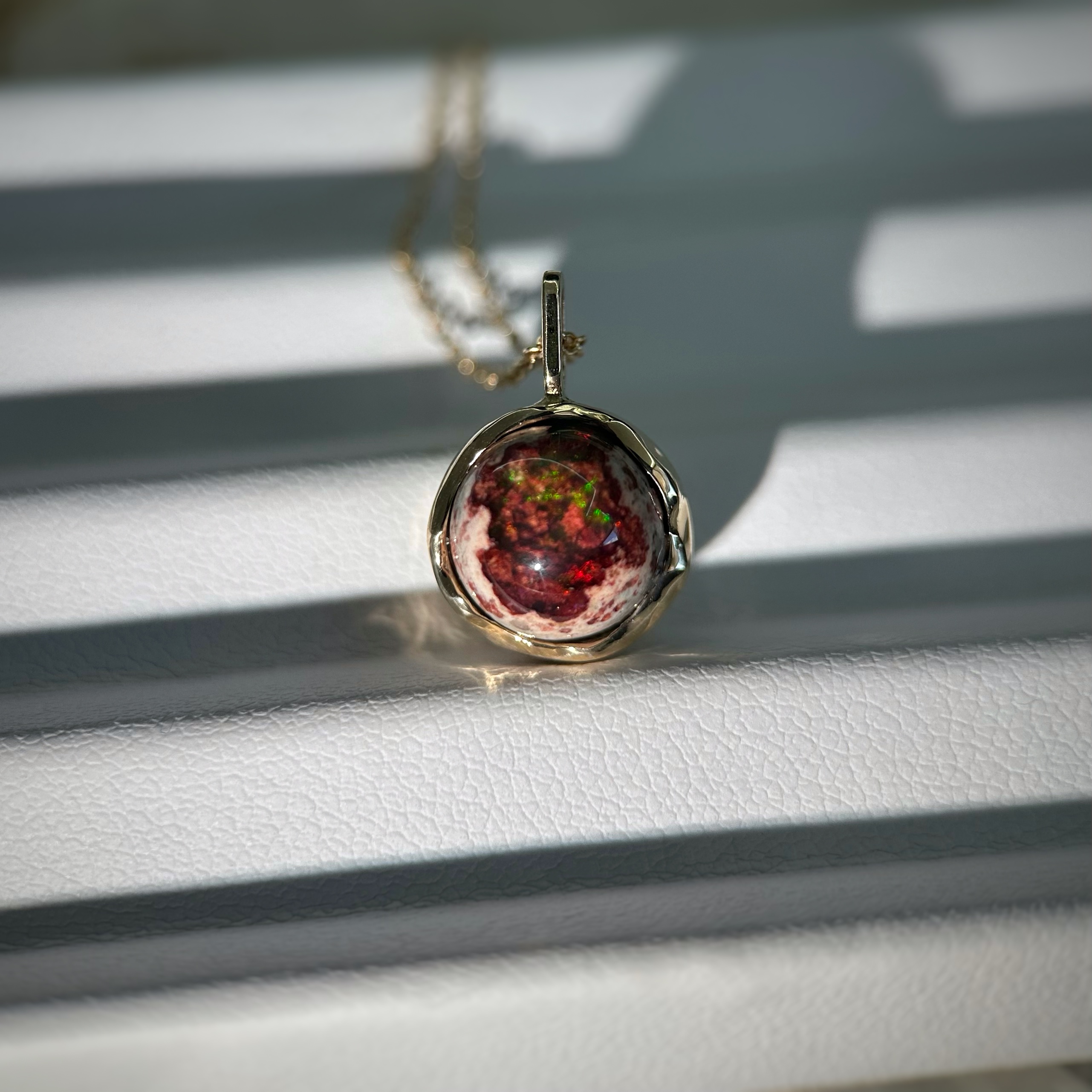 14K Molten Yellow gold pendant with Mexican Cantera Opal