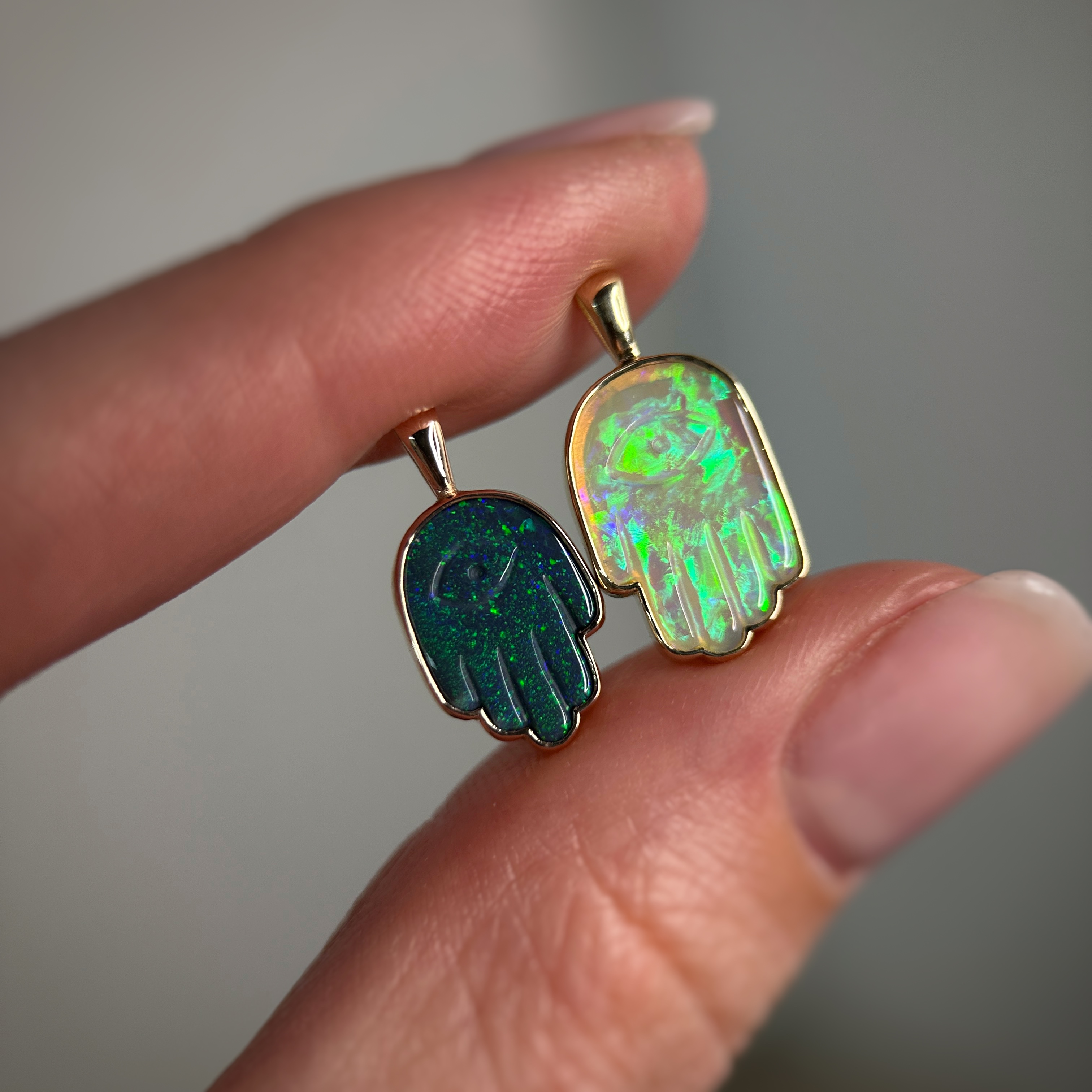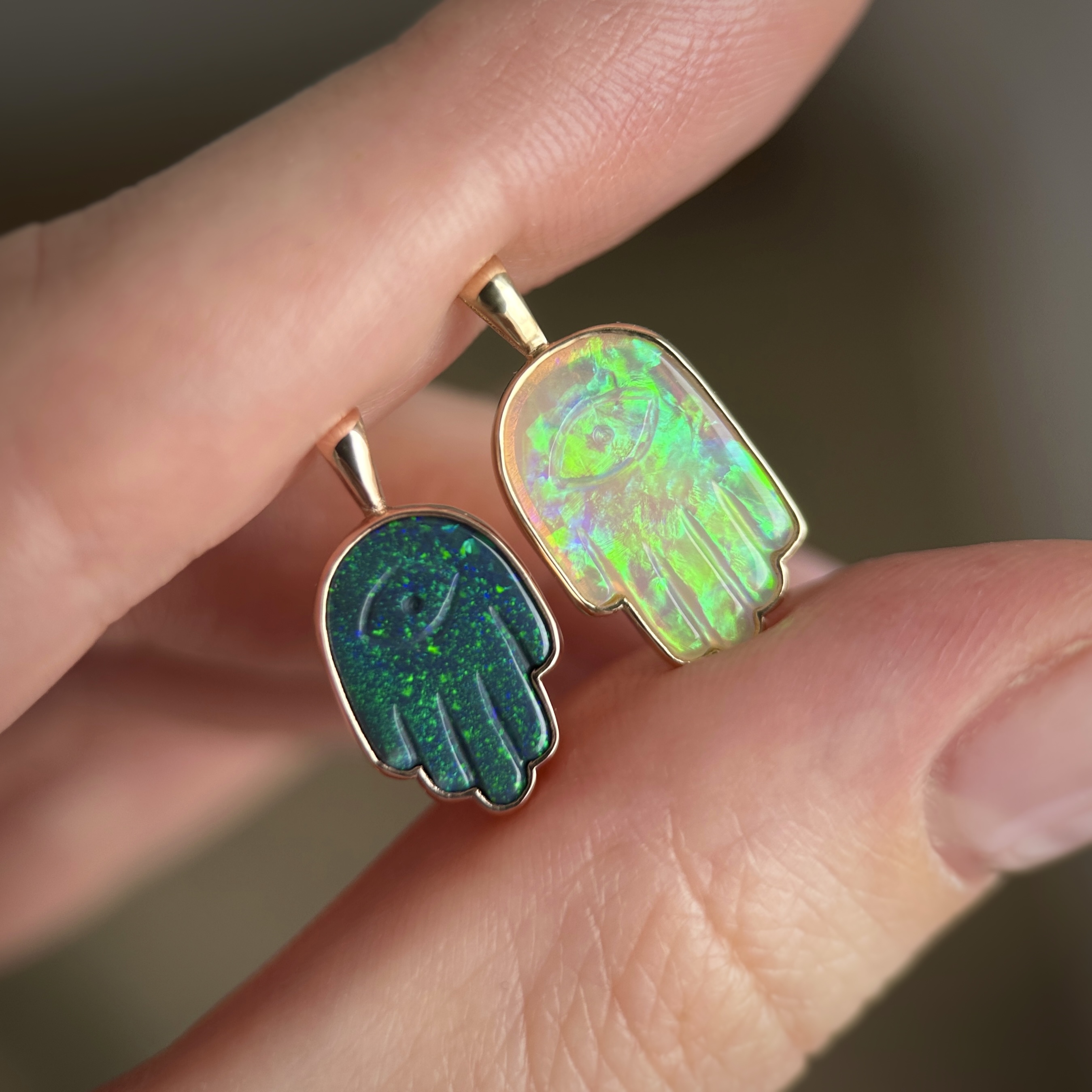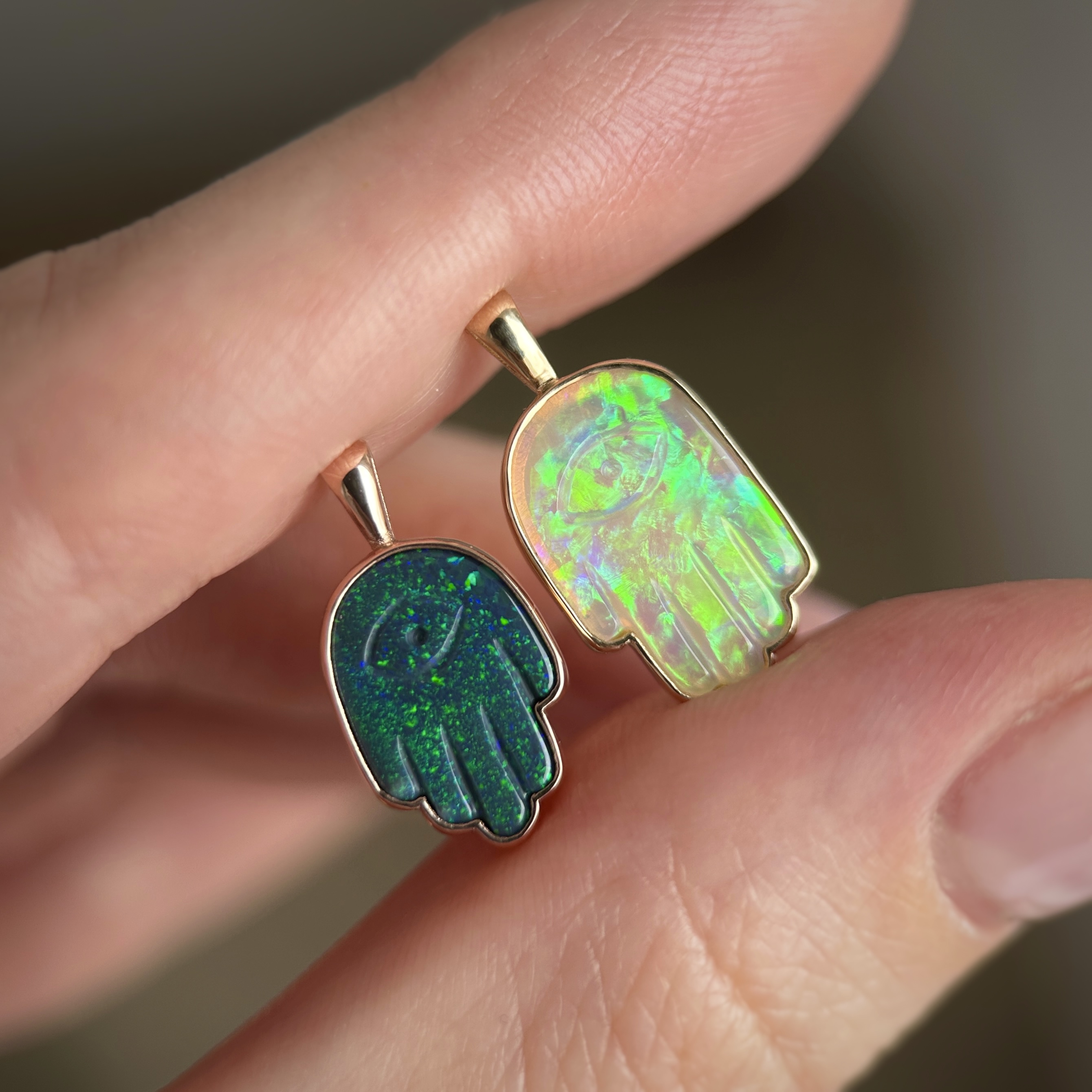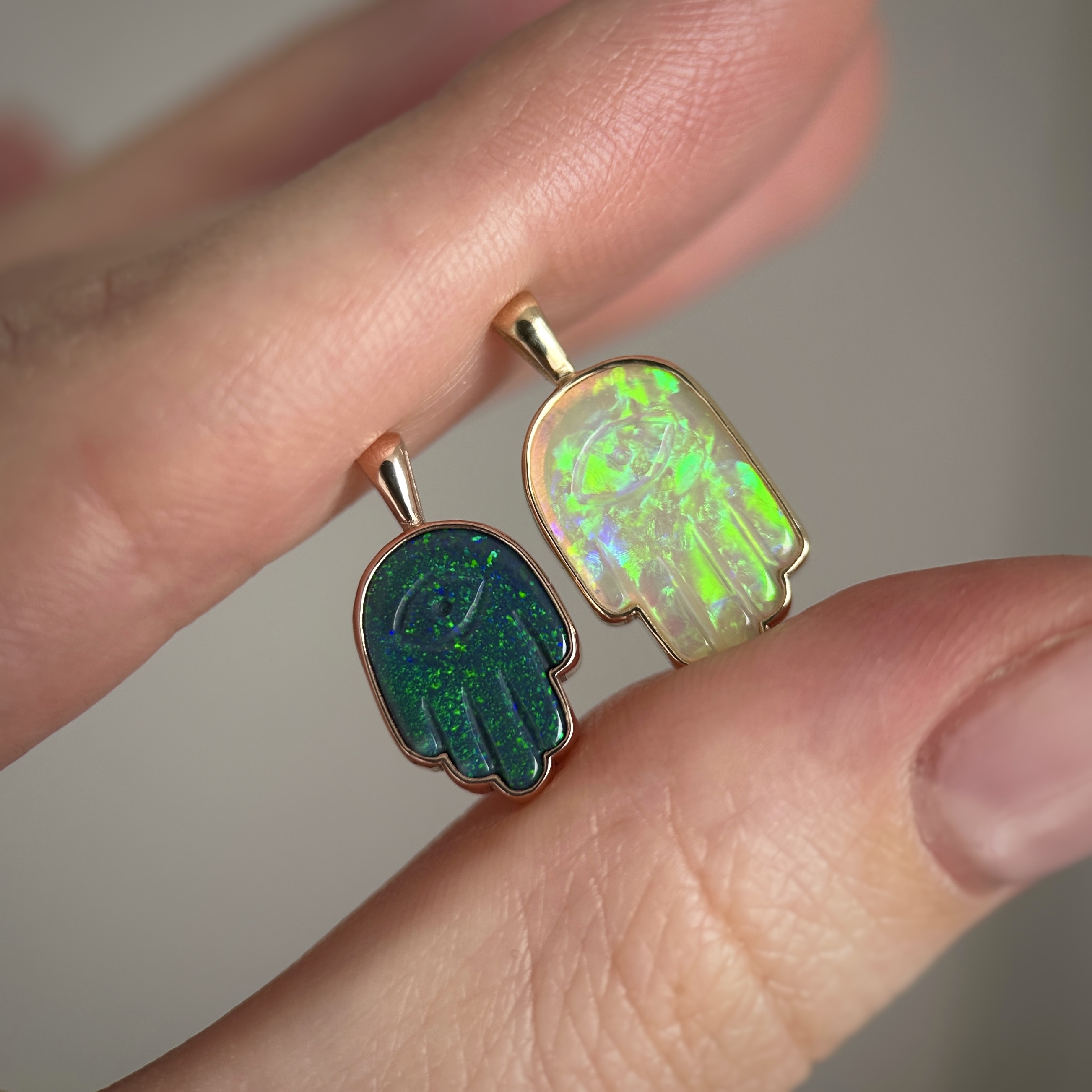 14K Yellow and Rose gold pendants with Australian Black or Crystal Opal