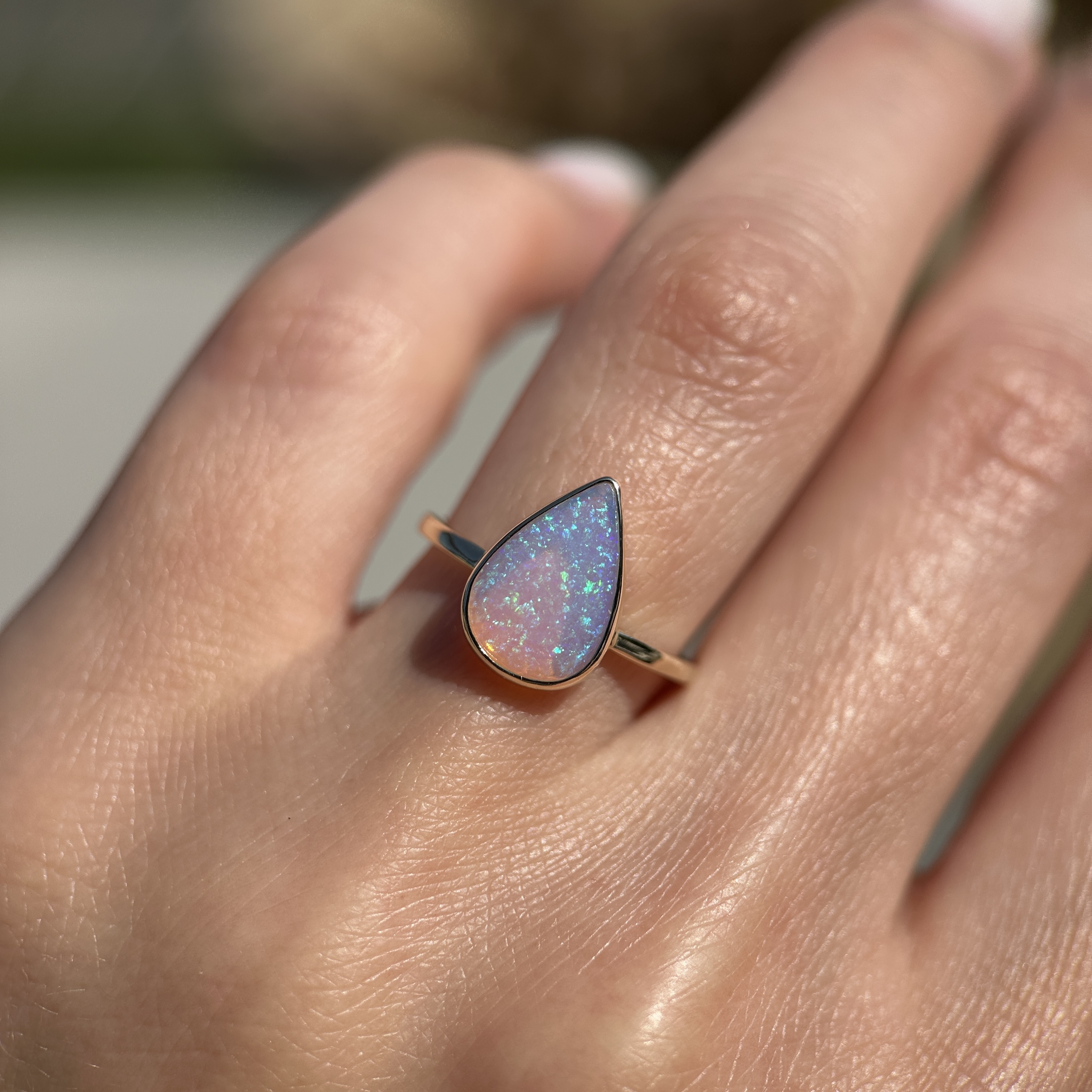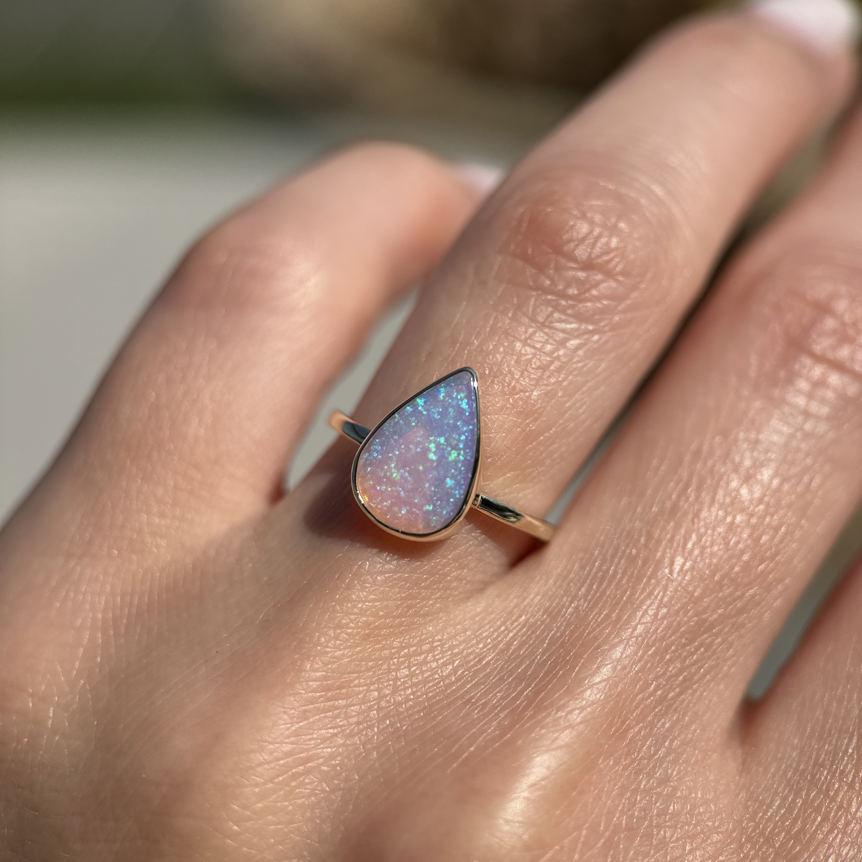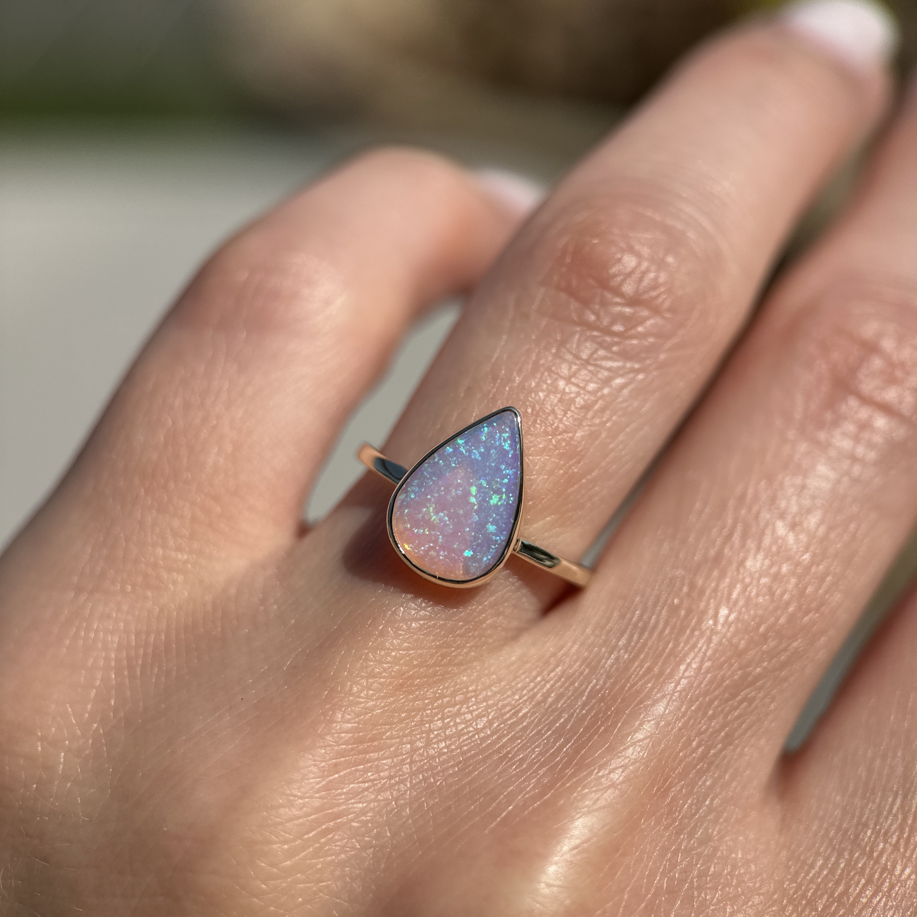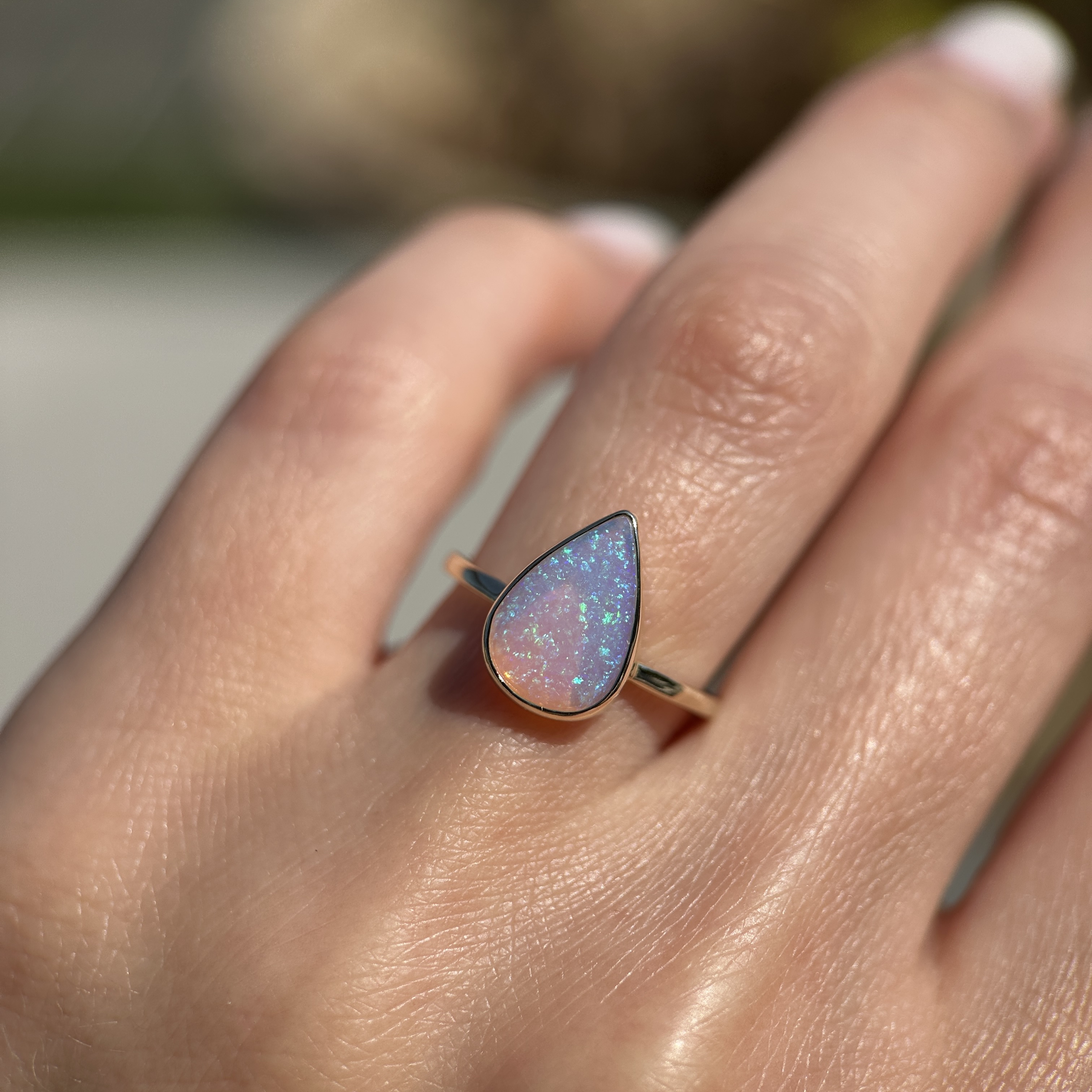 14K Yellow gold ring with Australian Crystal Opal SZ 5