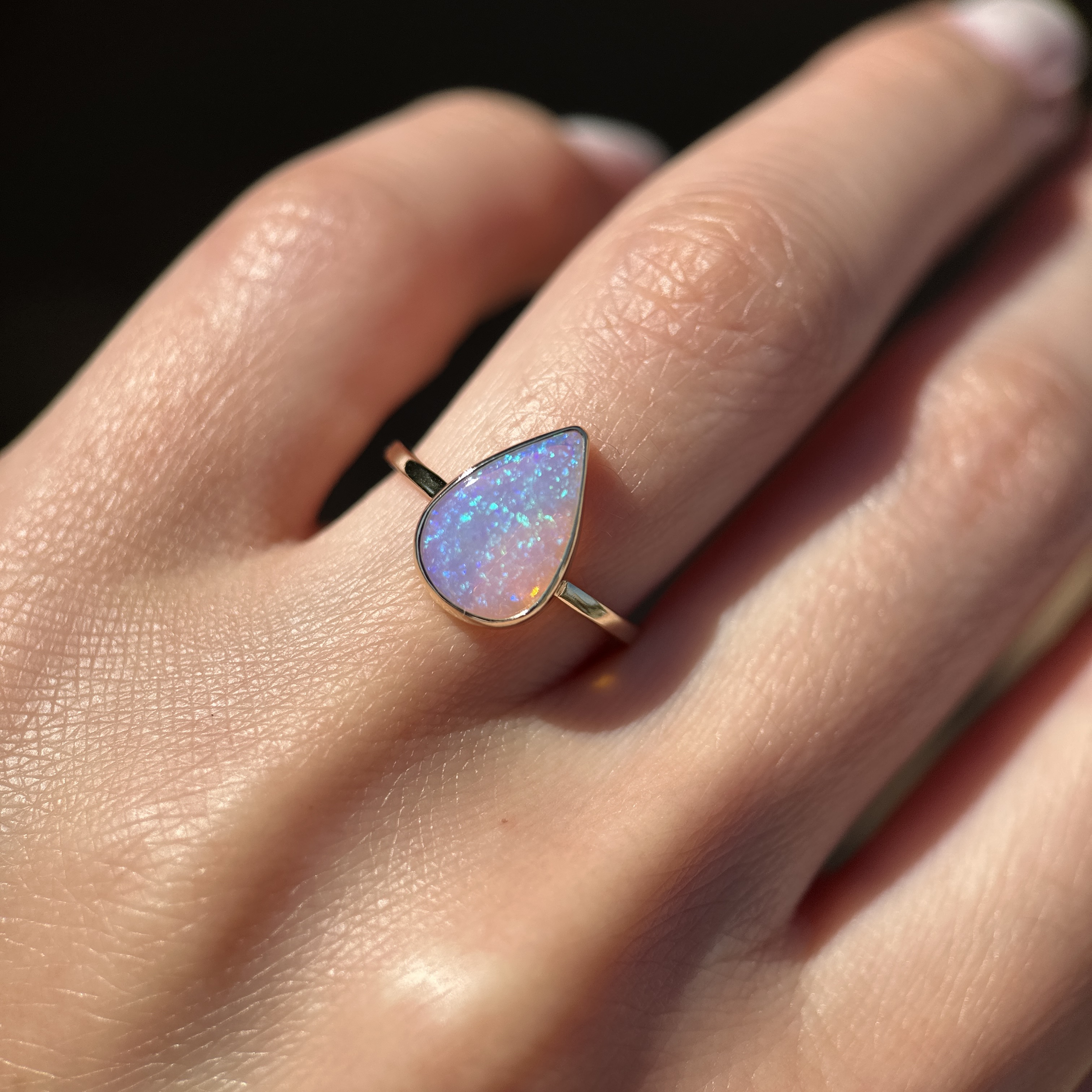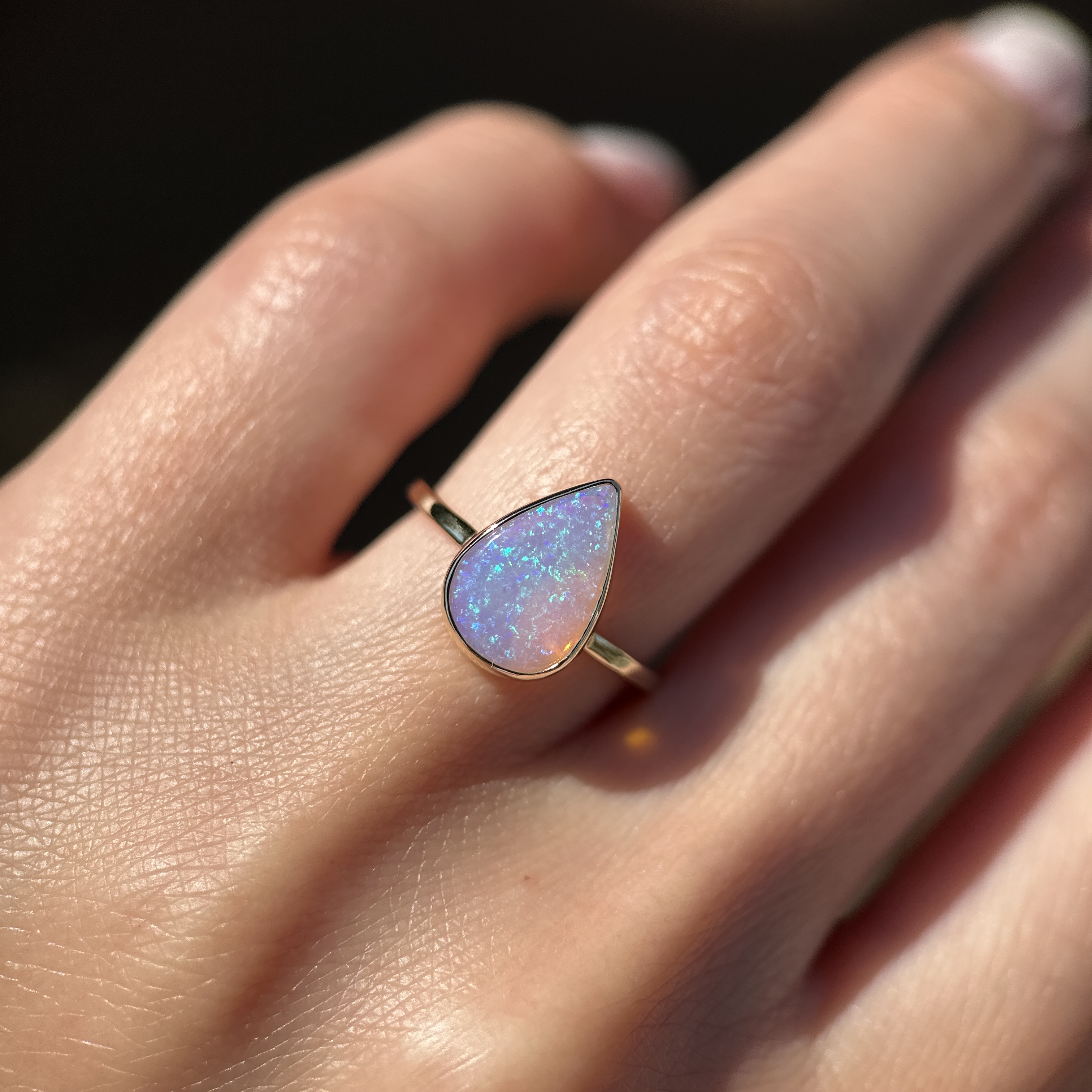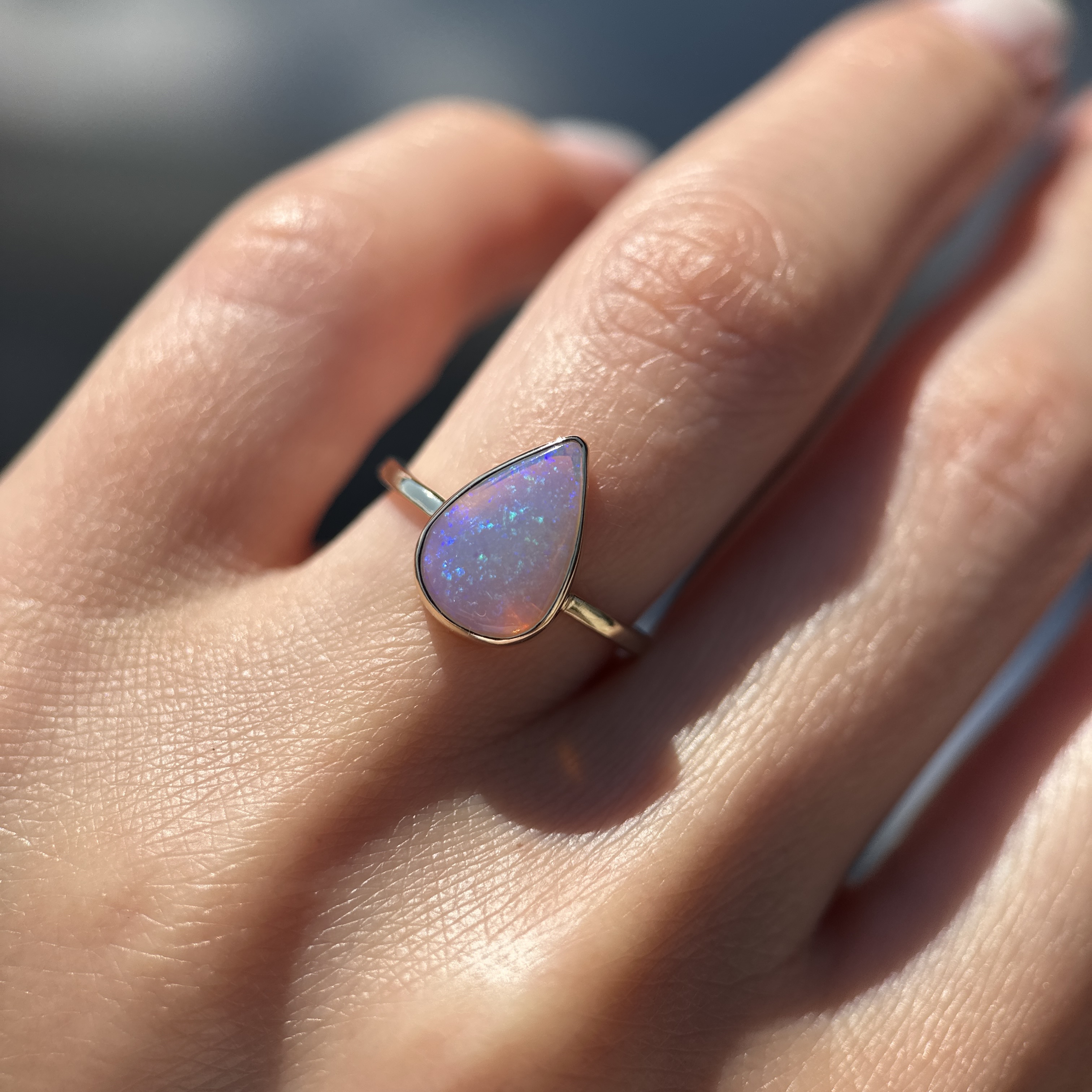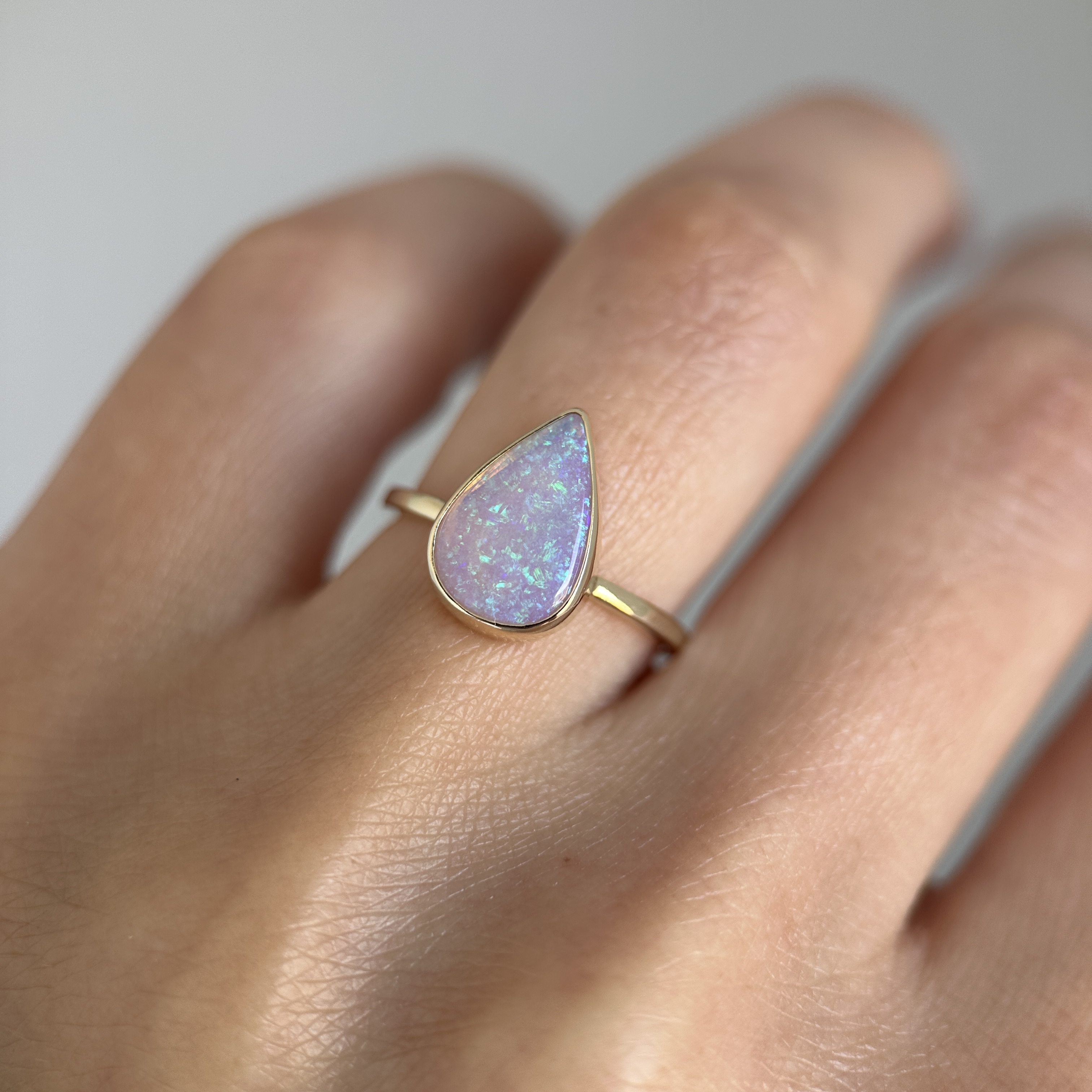 14K Yellow gold ring with Australian Crystal Opal SZ 5