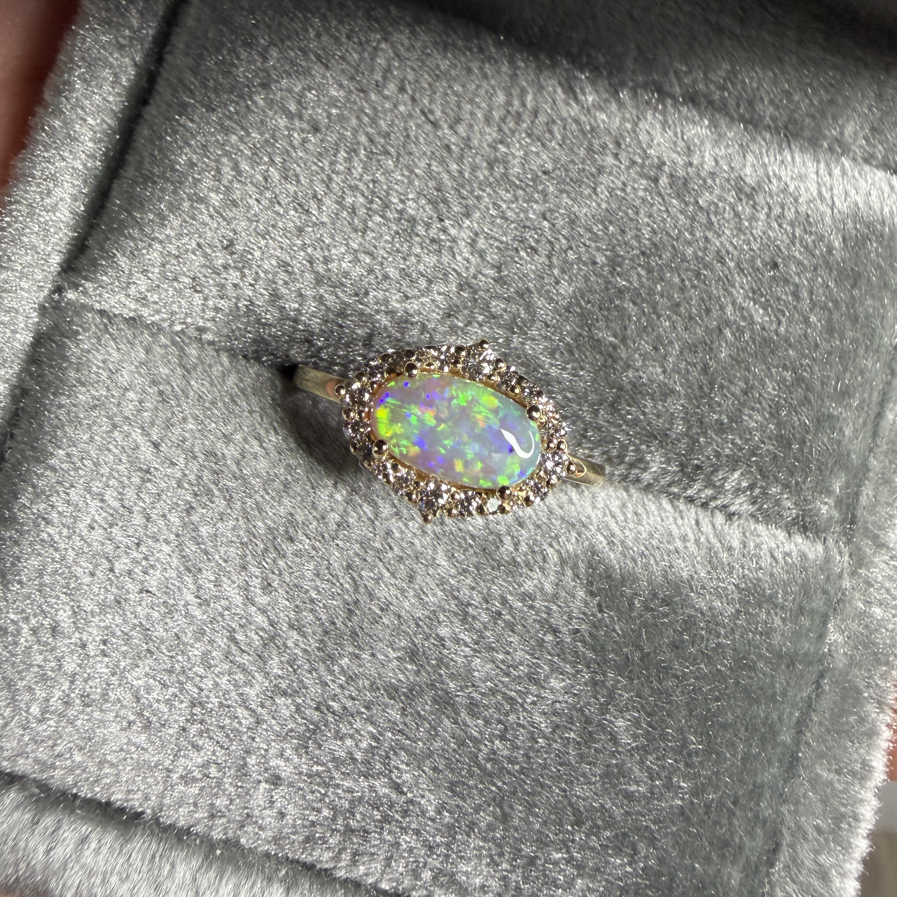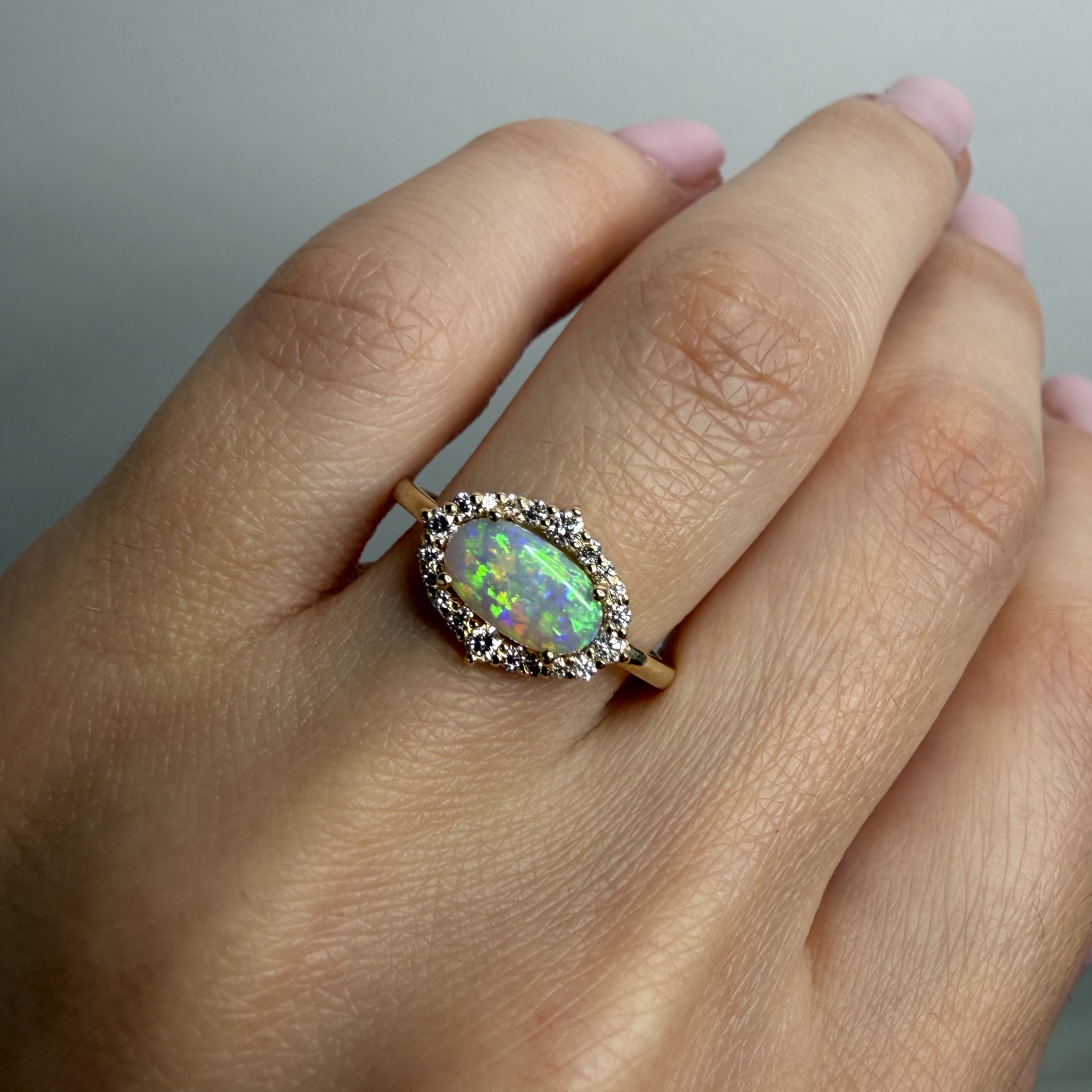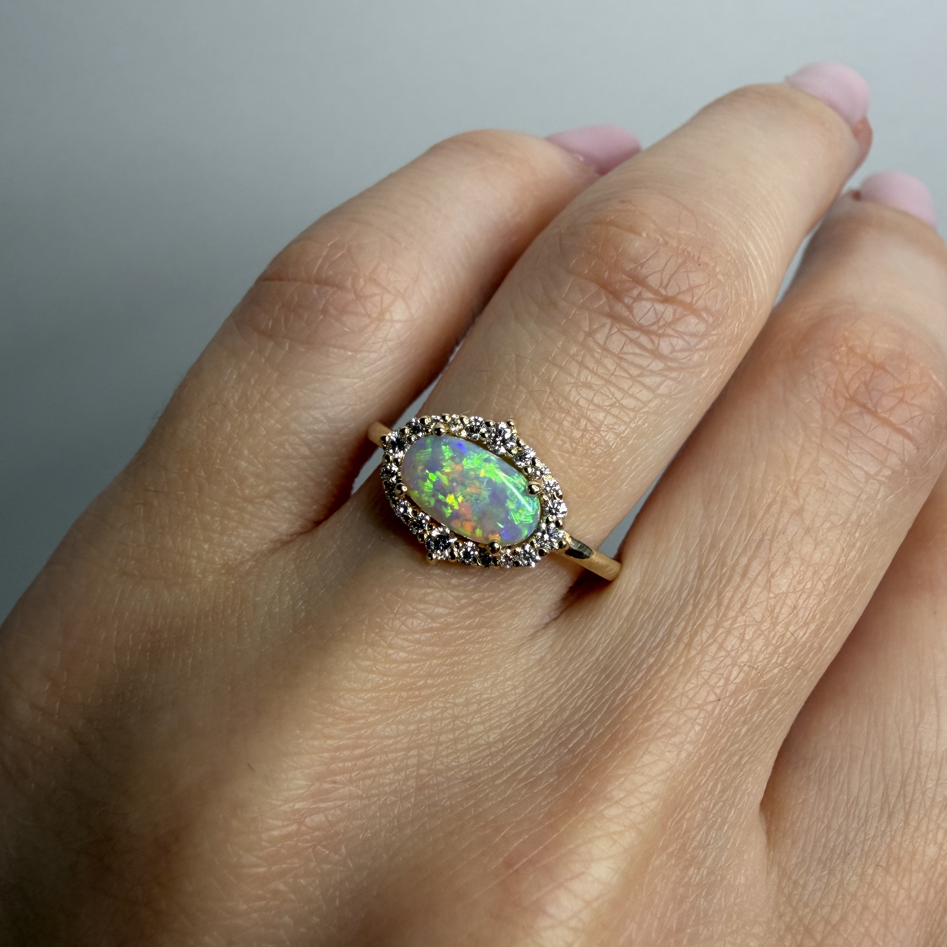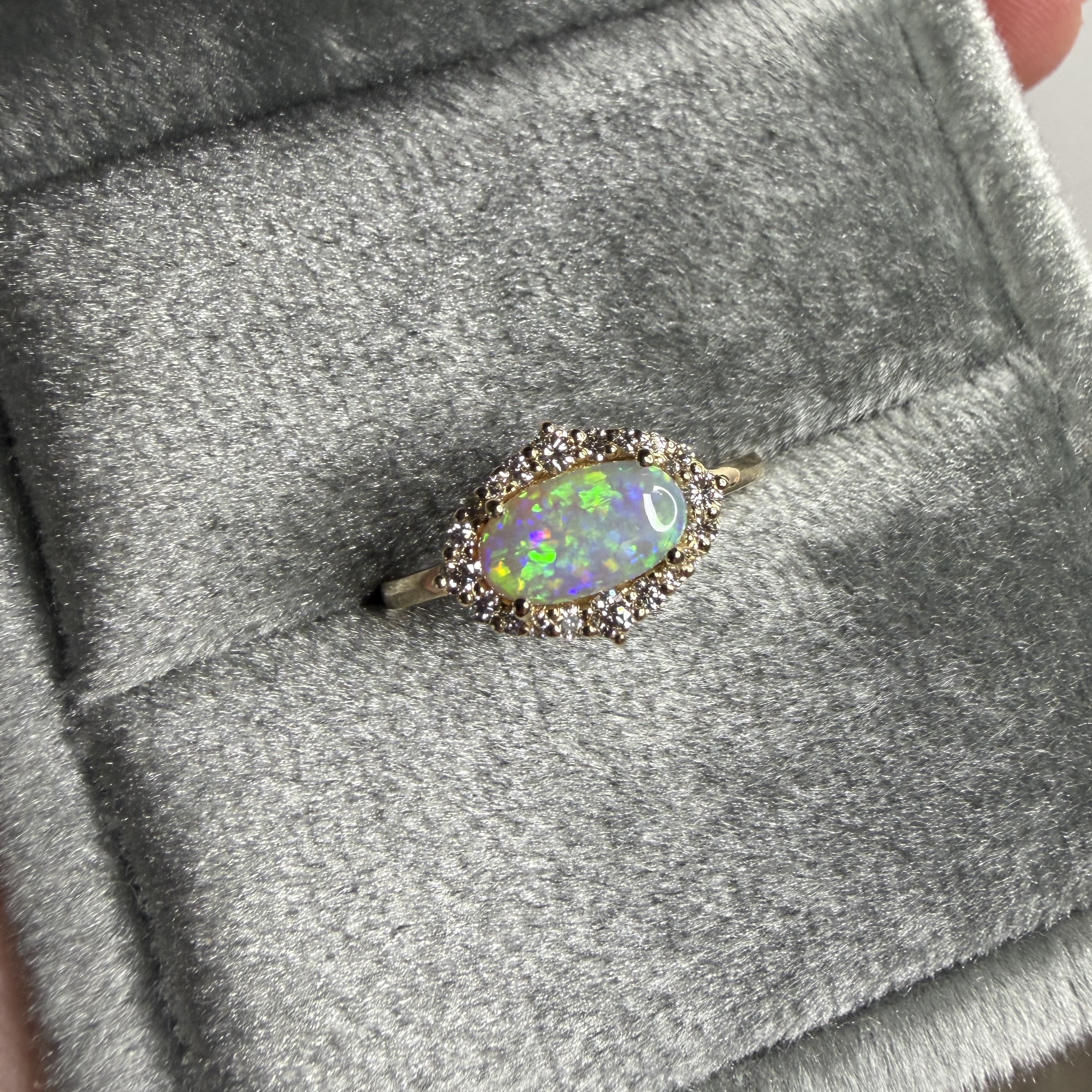 14K Yellow gold ring with Australian Dark Opal & Diamonds