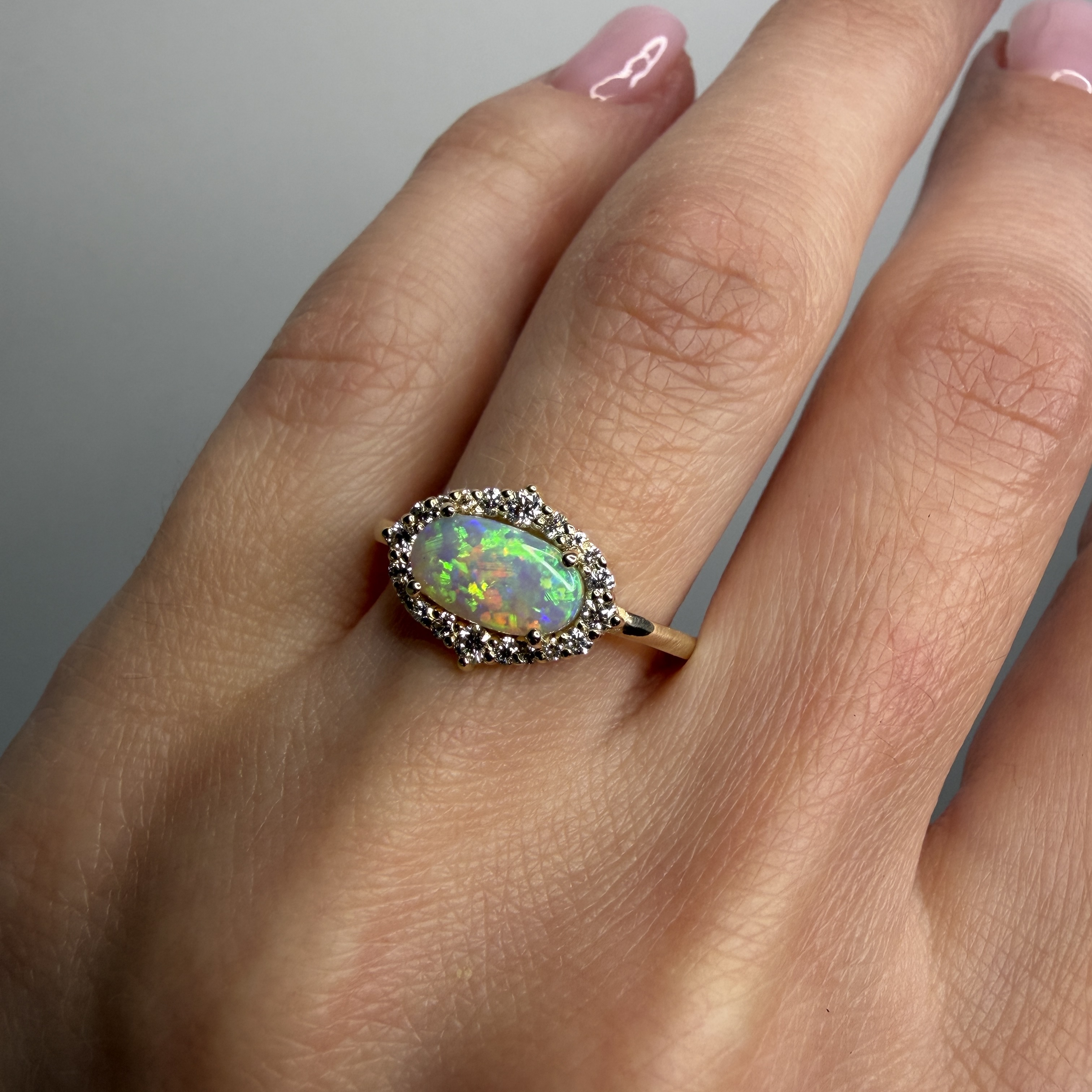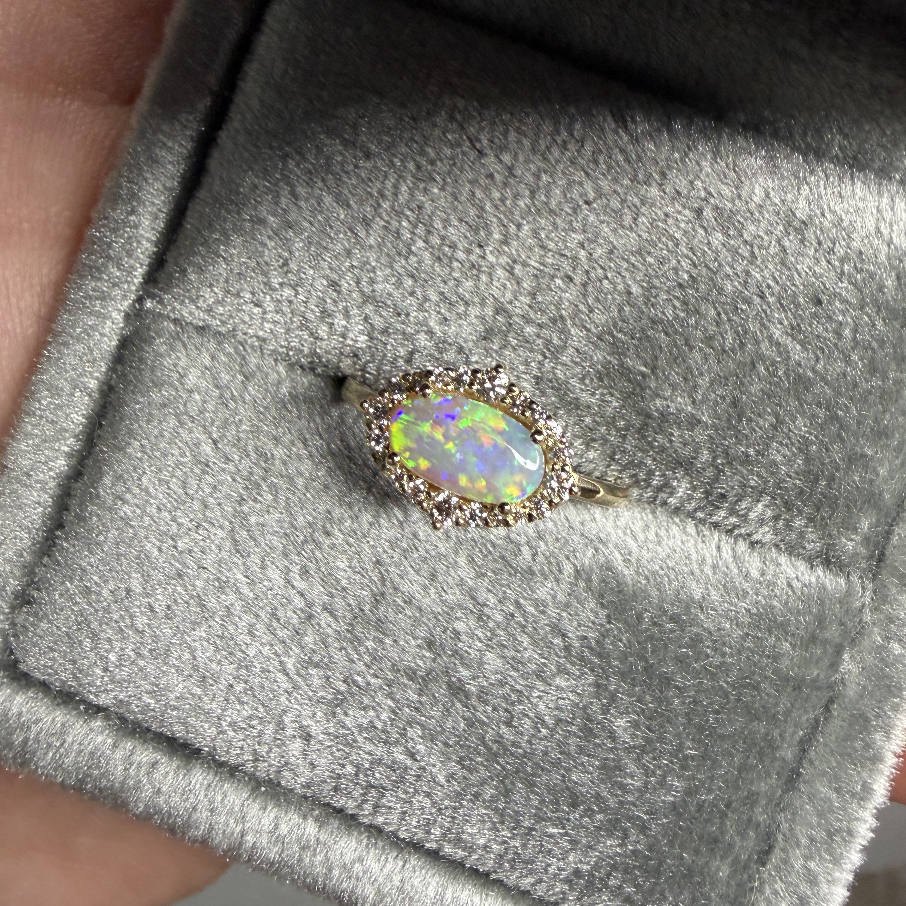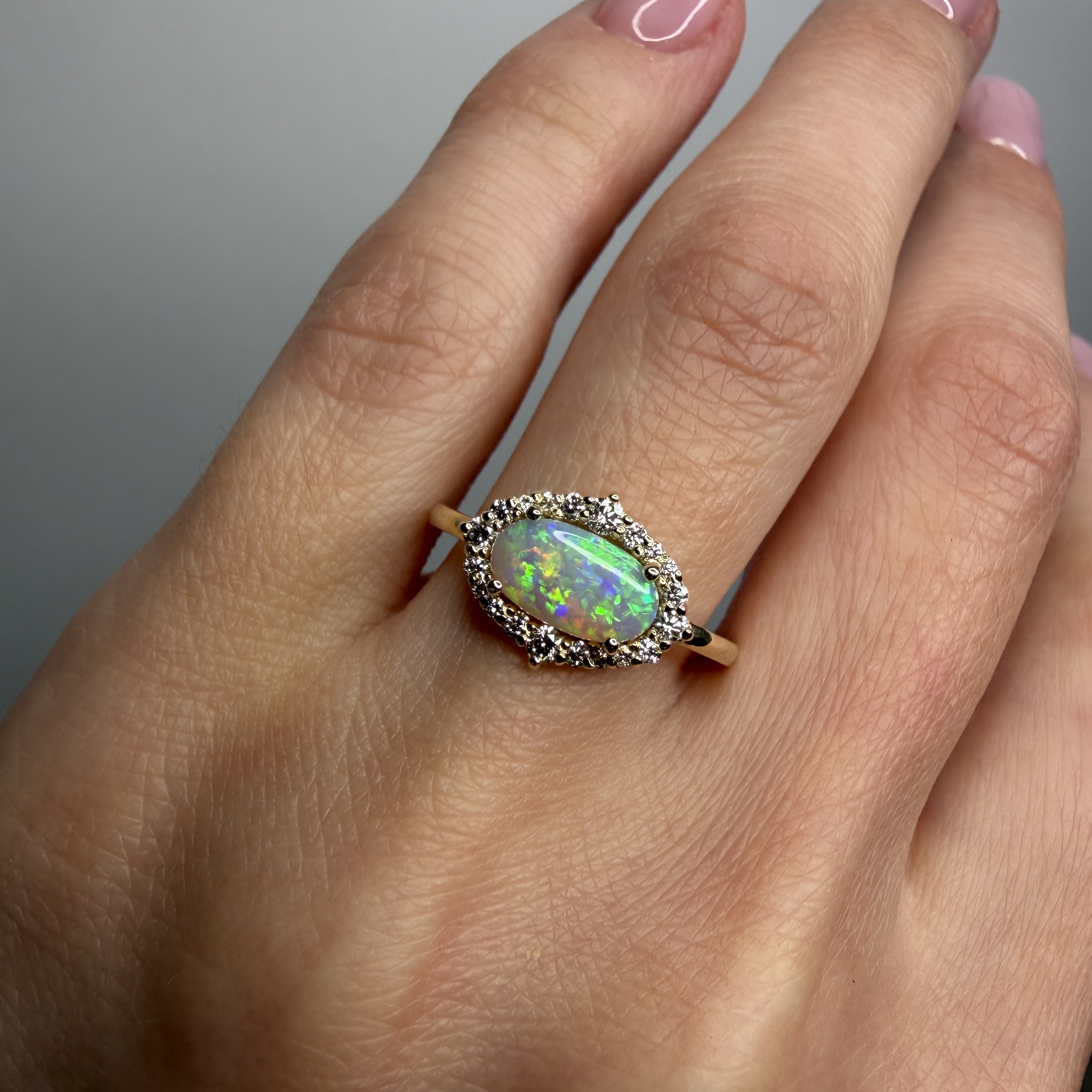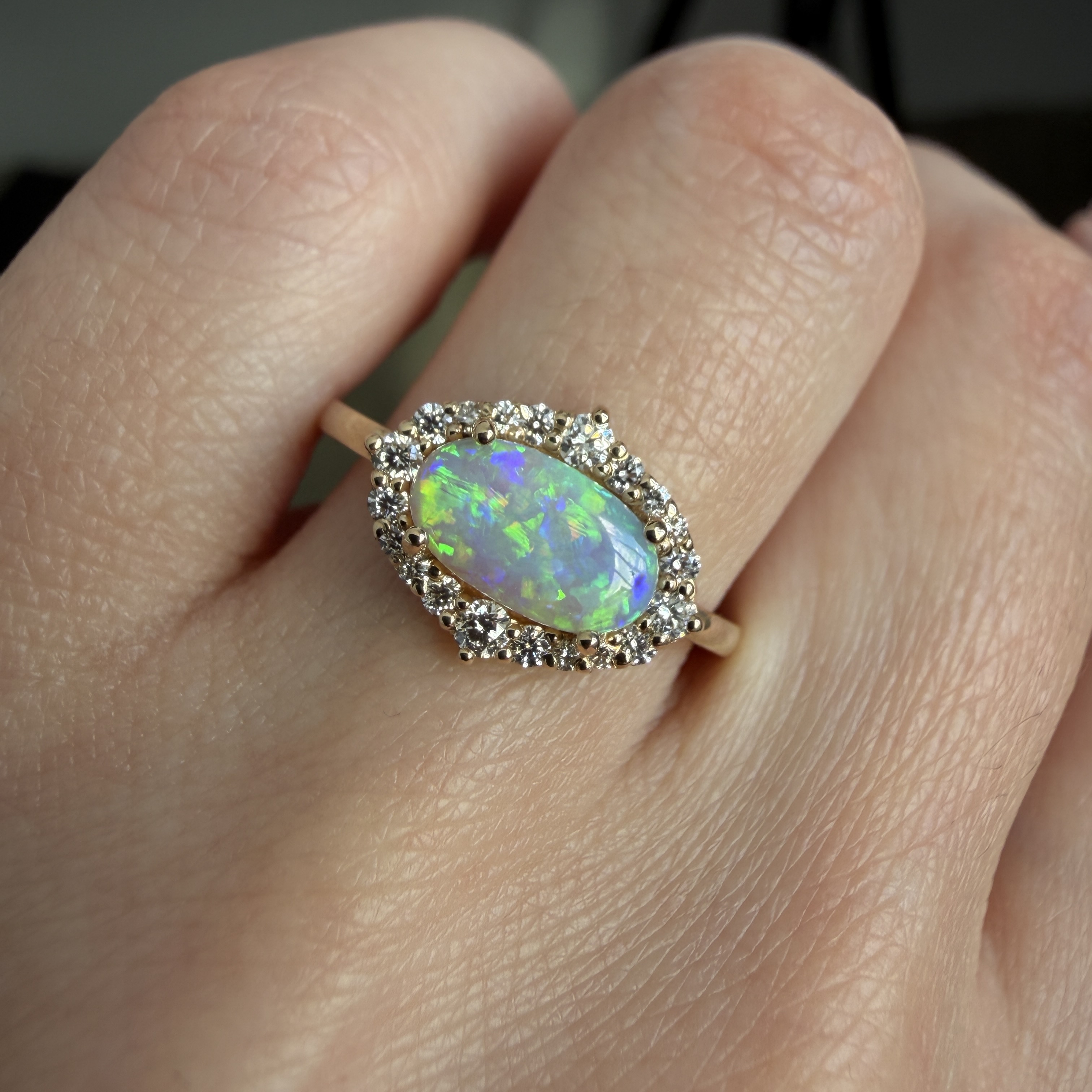 14K Yellow gold ring with Australian Dark Opal & Diamonds