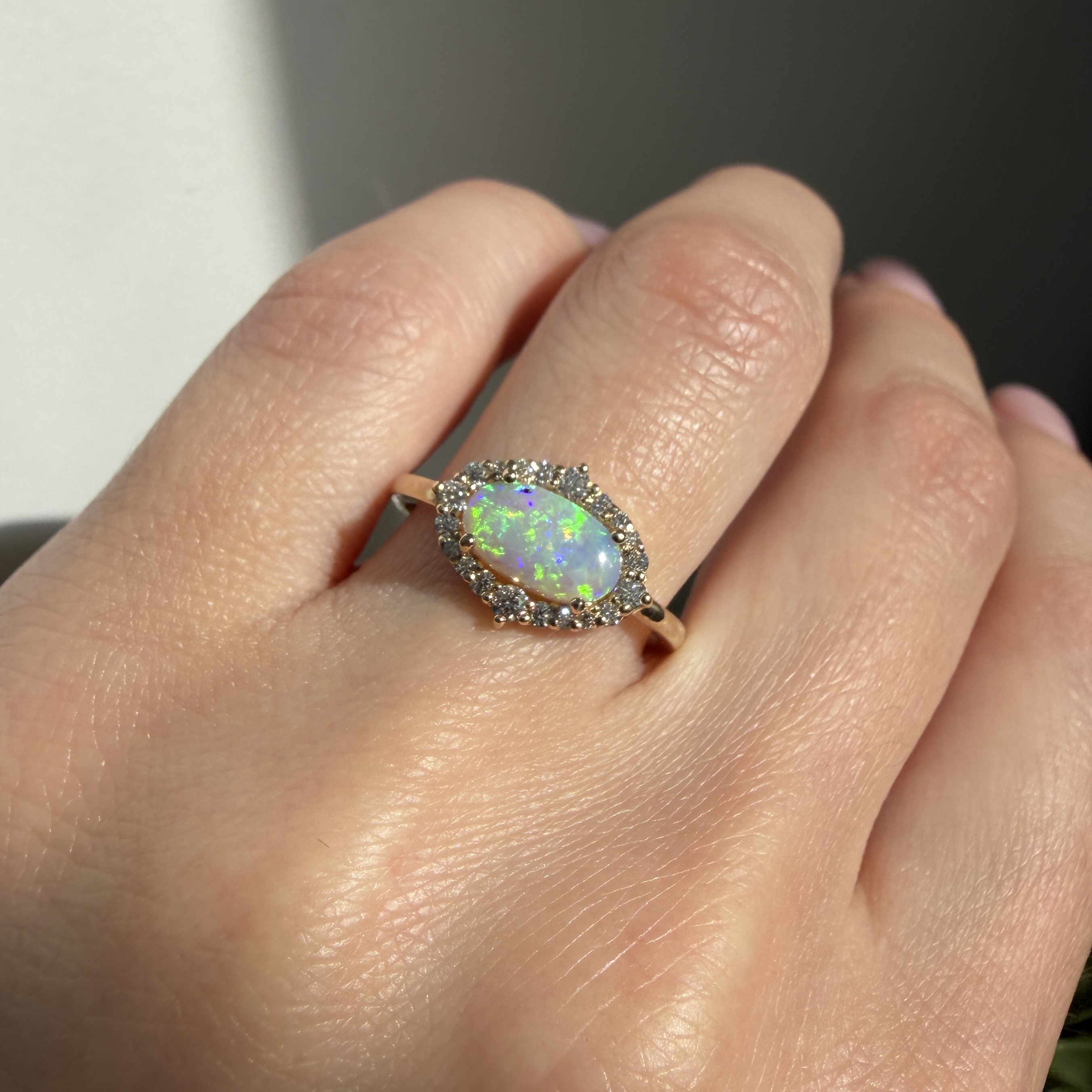 - Stones: Australian opal, Diamonds (natural untreated stones)