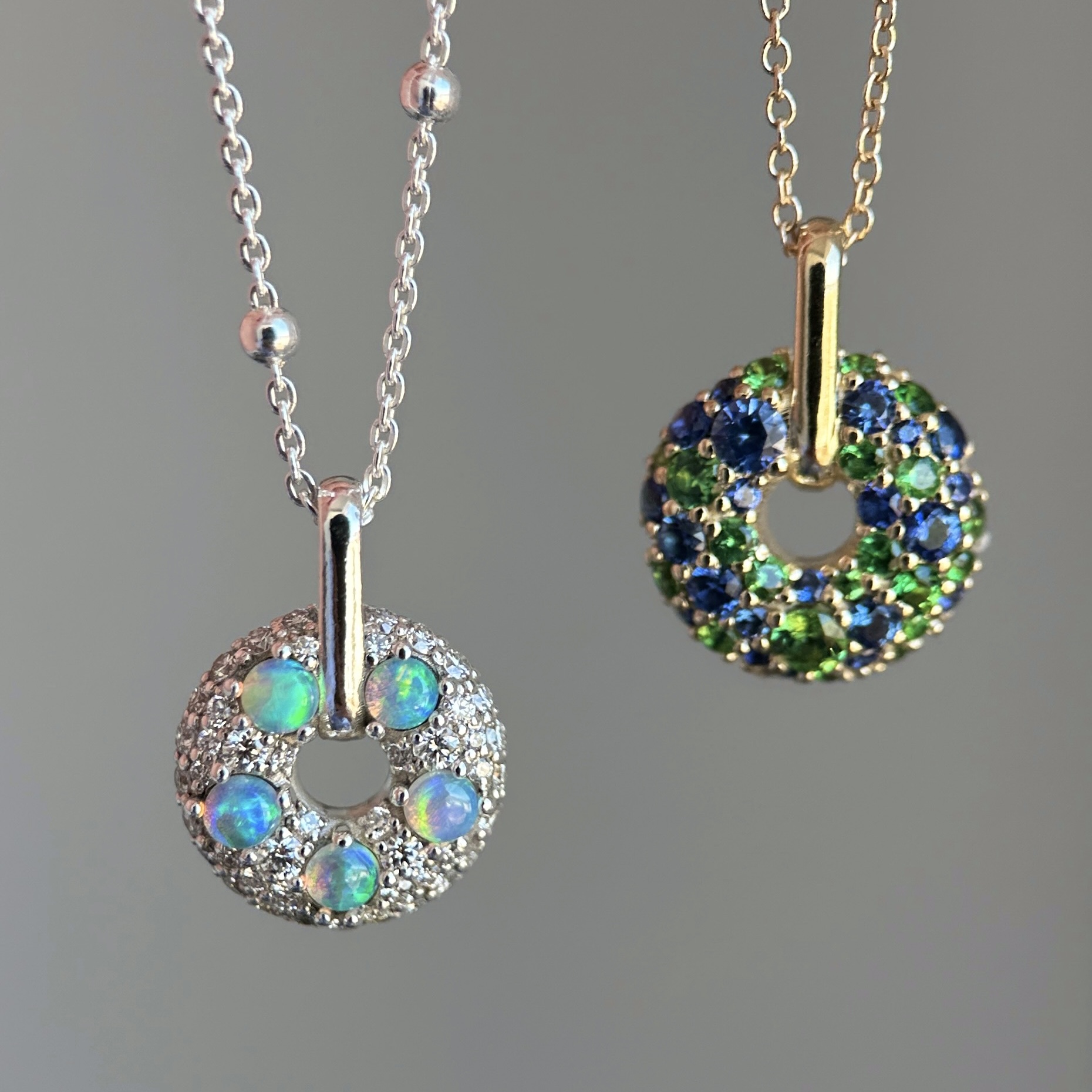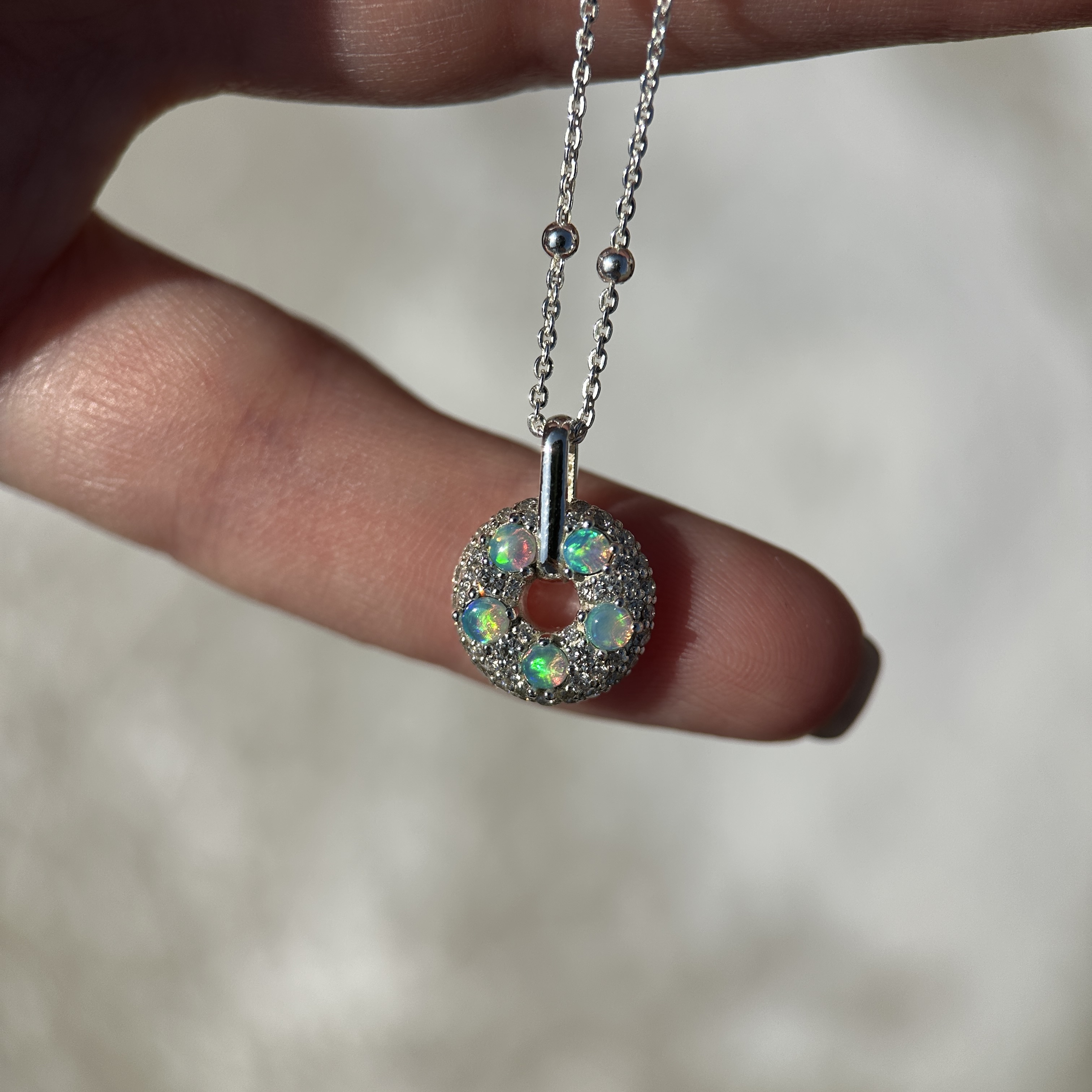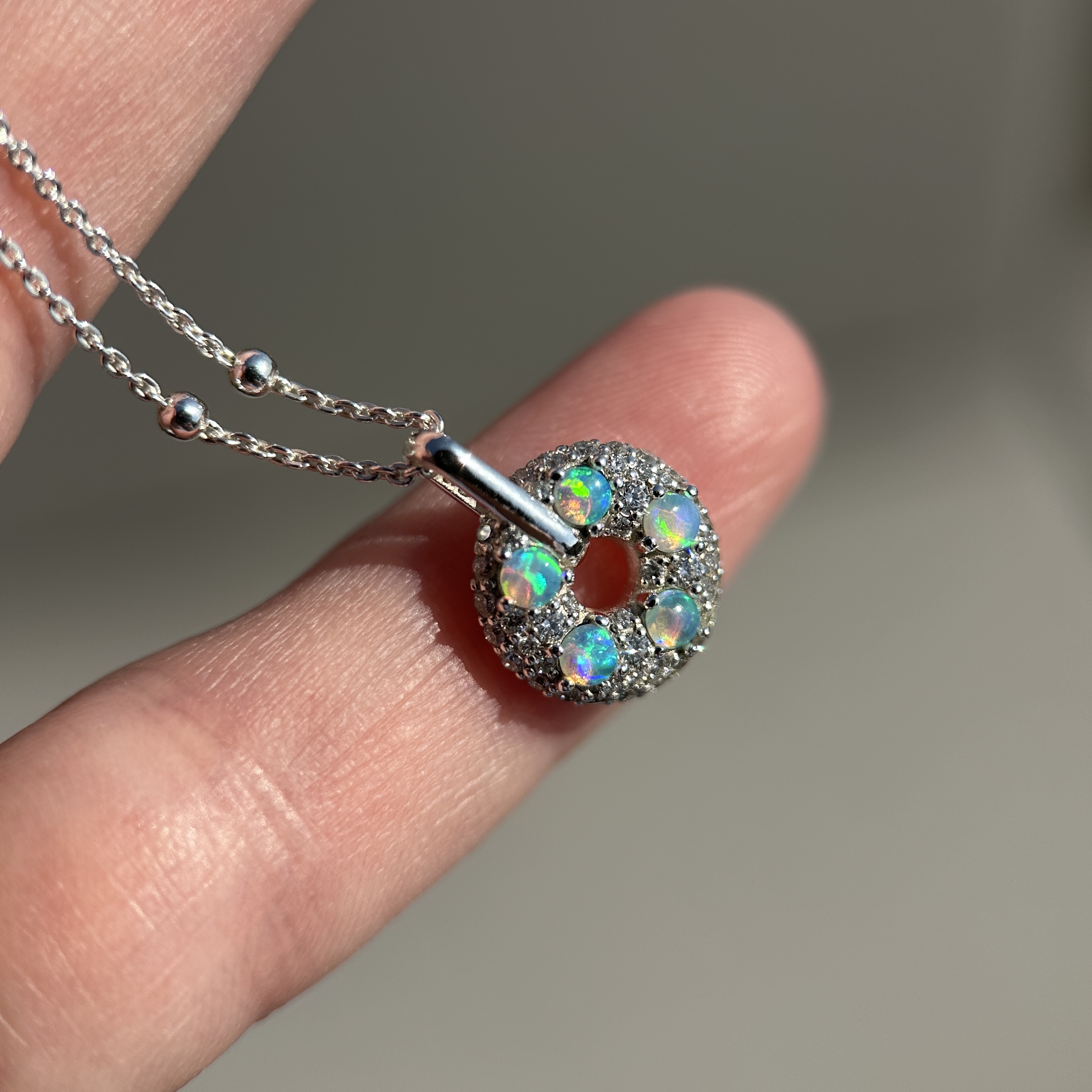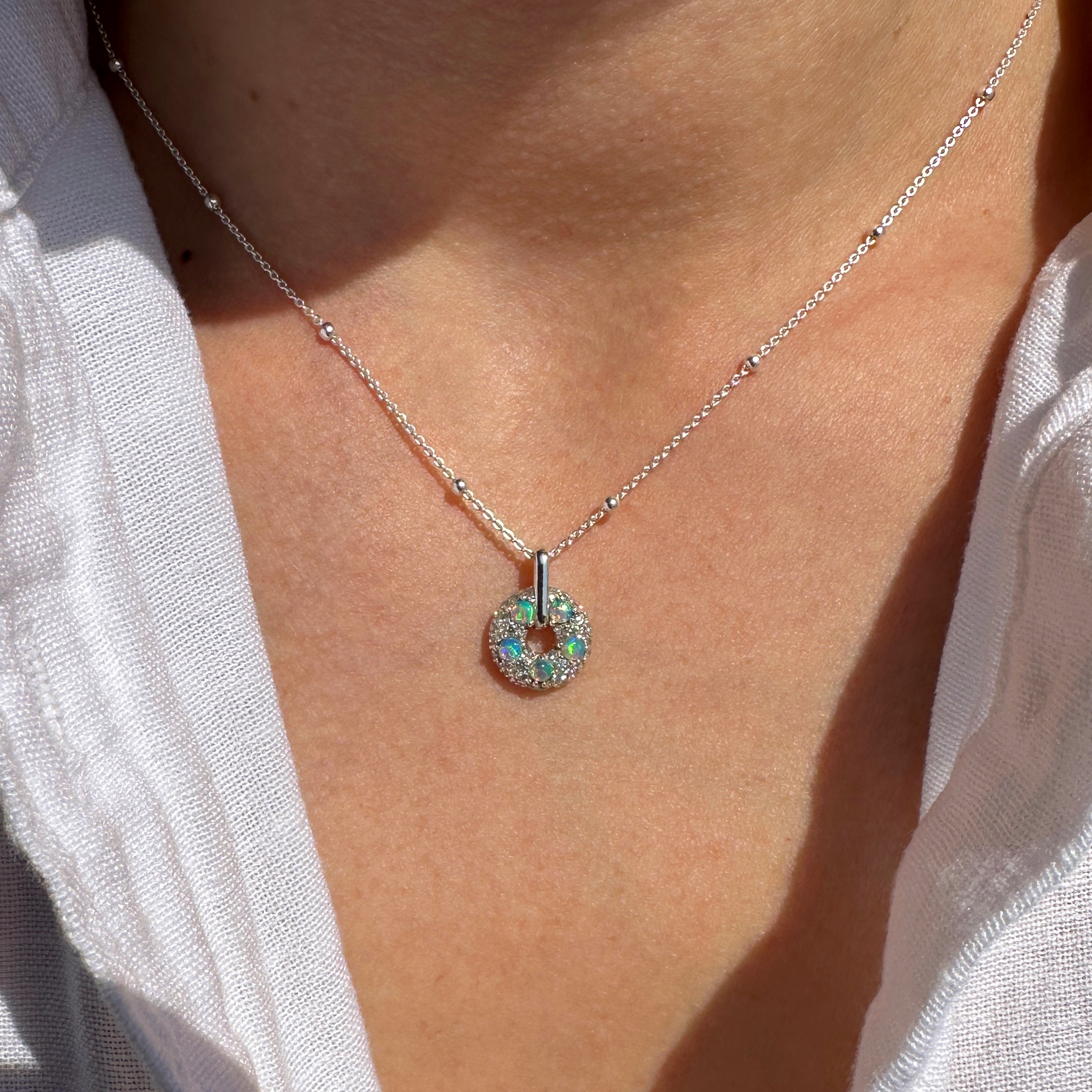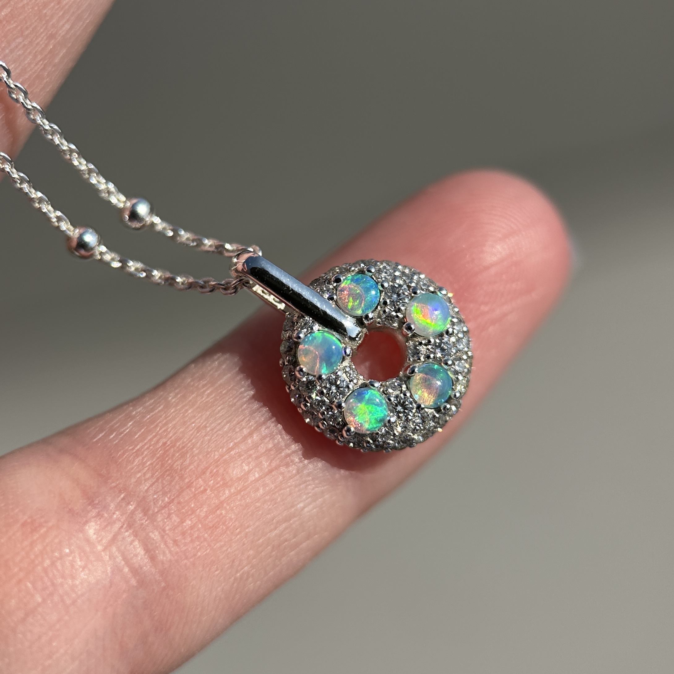 Australian Opal & Diamond Donut Pendant