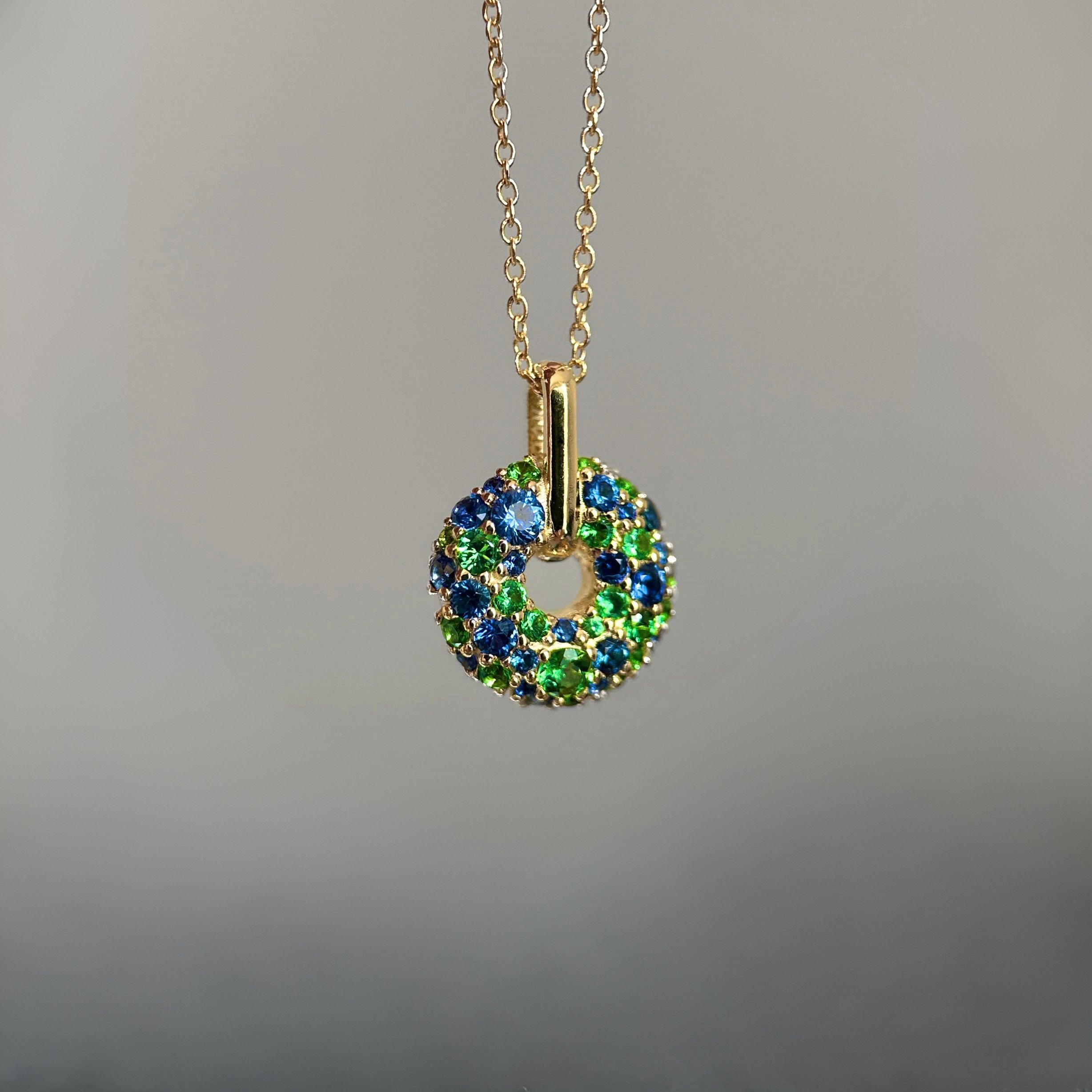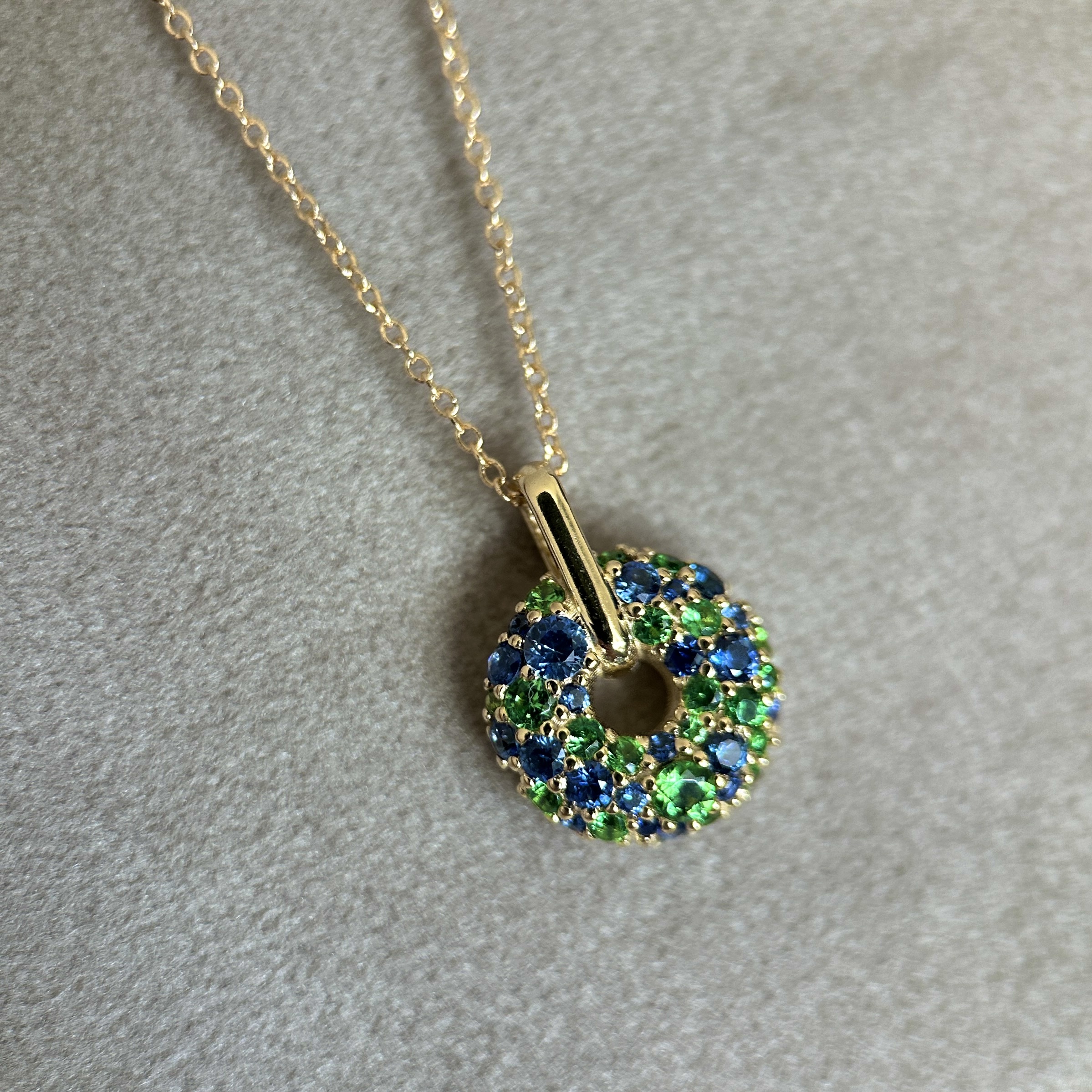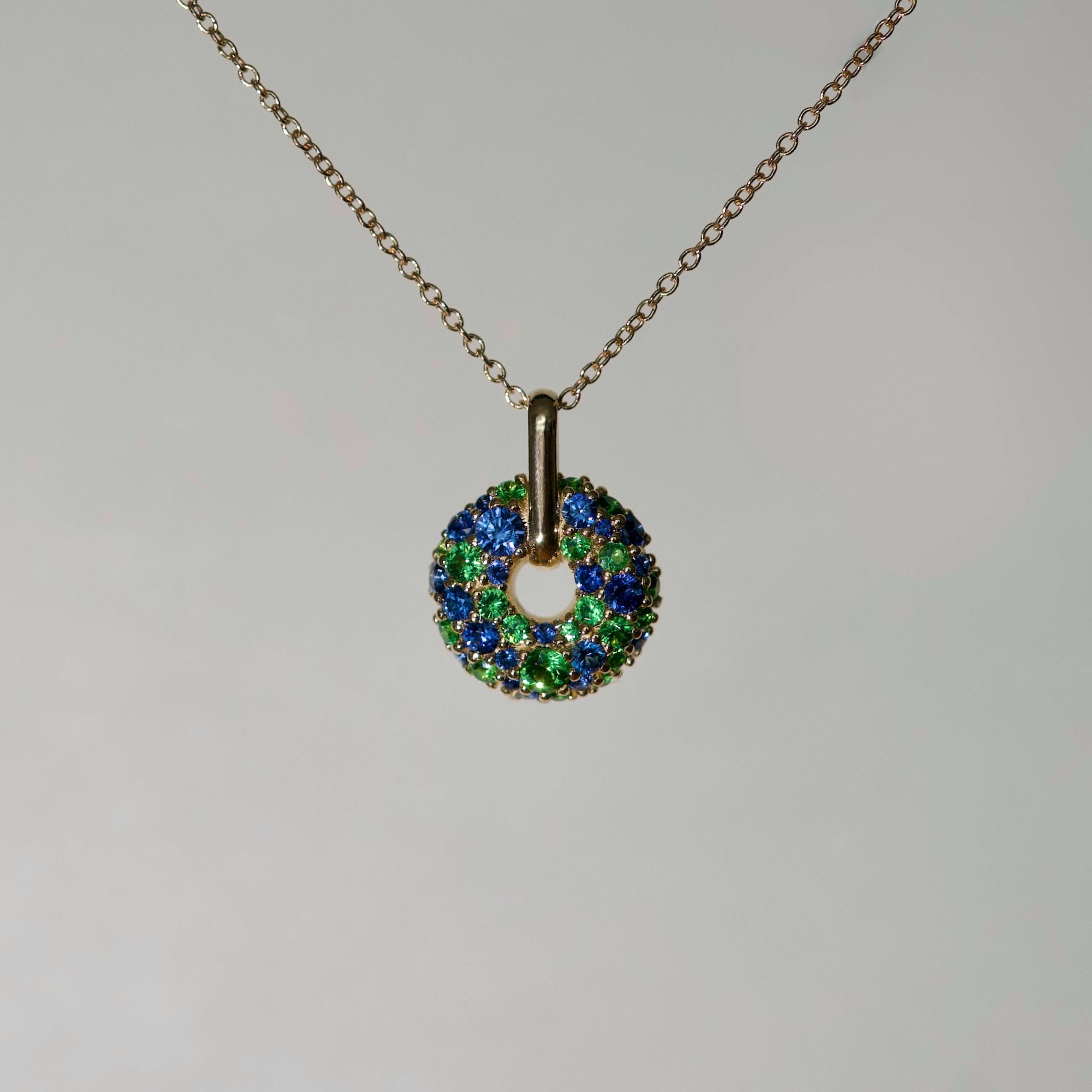 Custom made Blue Sapphire & Tsavorite Garnet Donut Pendant