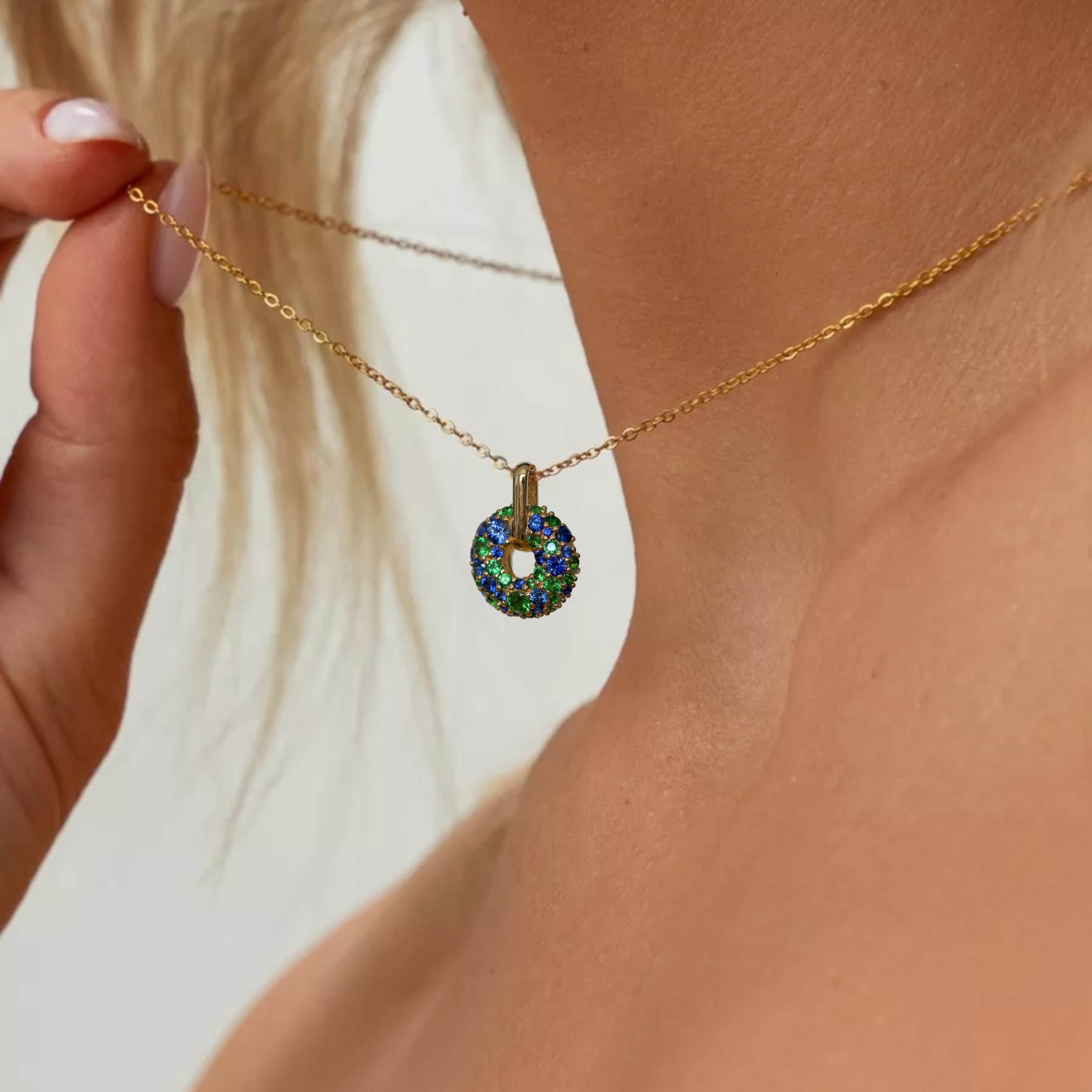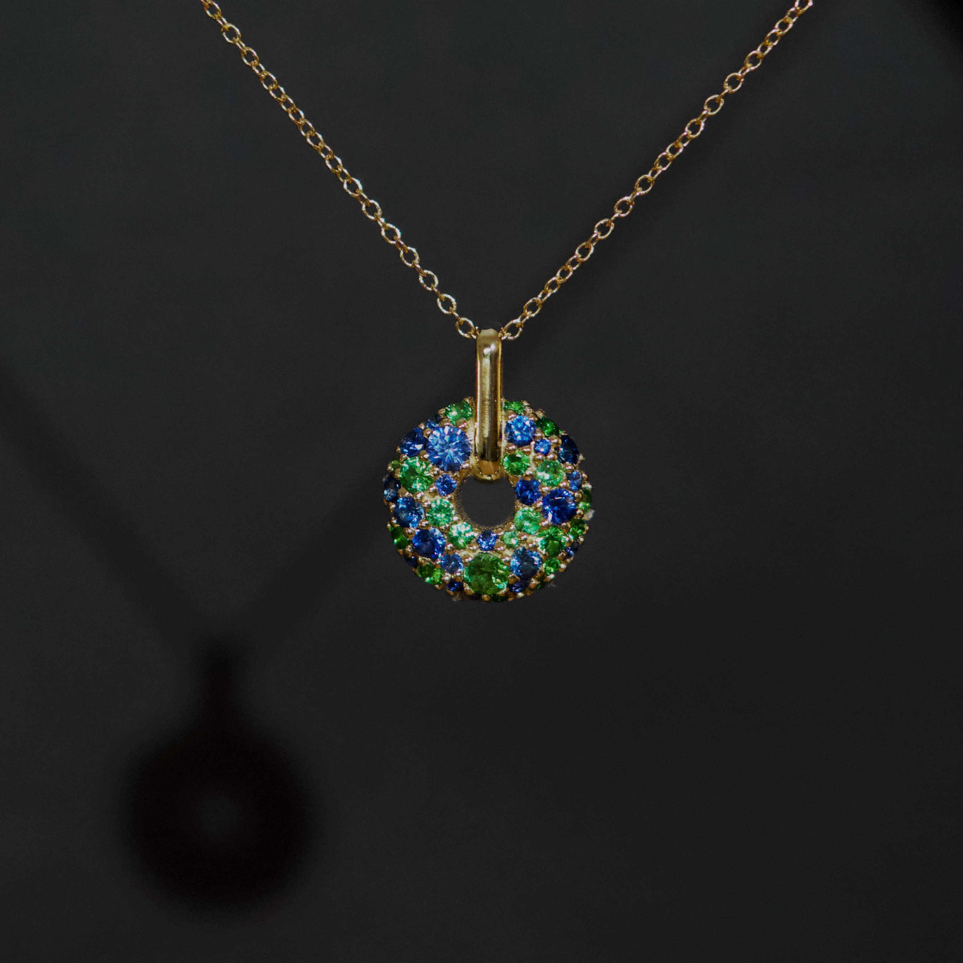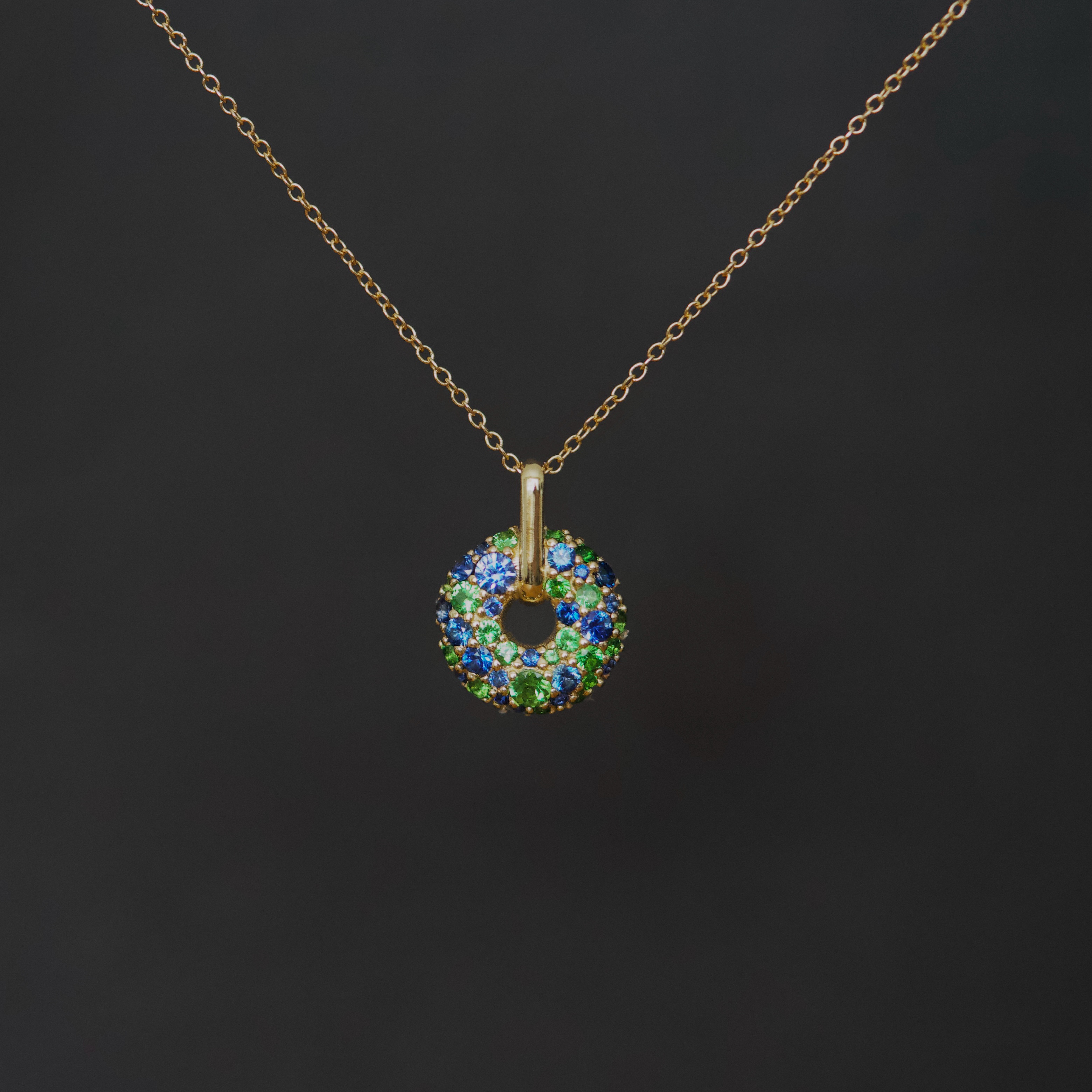 Custom made Blue Sapphire & Tsavorite Garnet Donut Pendant