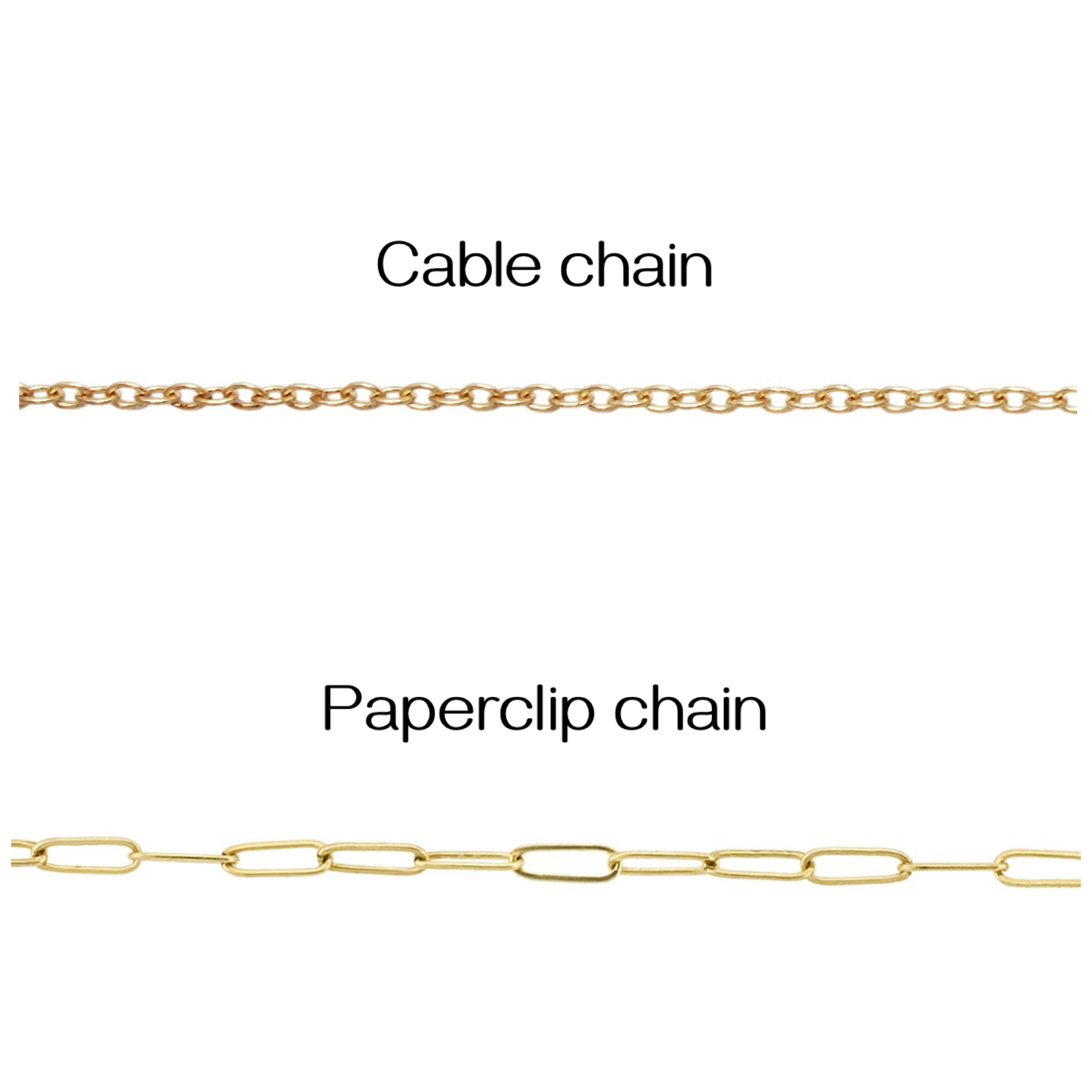 16” cable chain, 16” paperclip chain, 18” cable chain, 18” paperclip chain, No chain