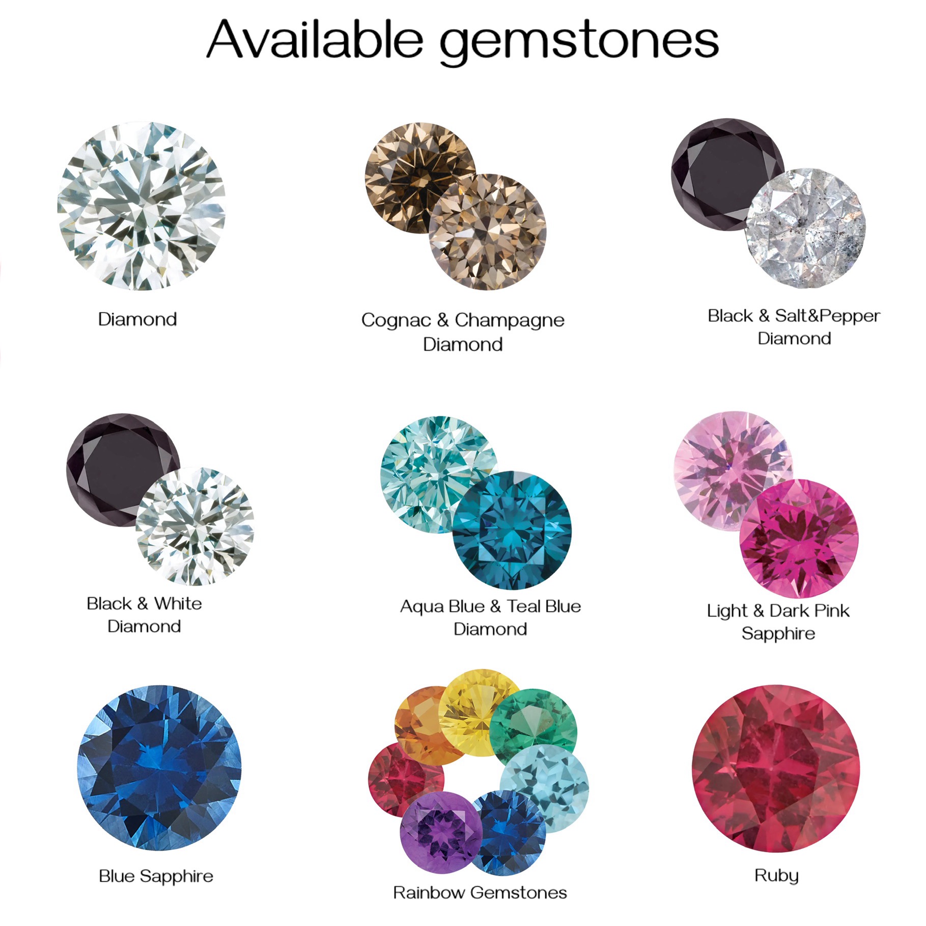 Other available gemstone options (please contact us for pricing):