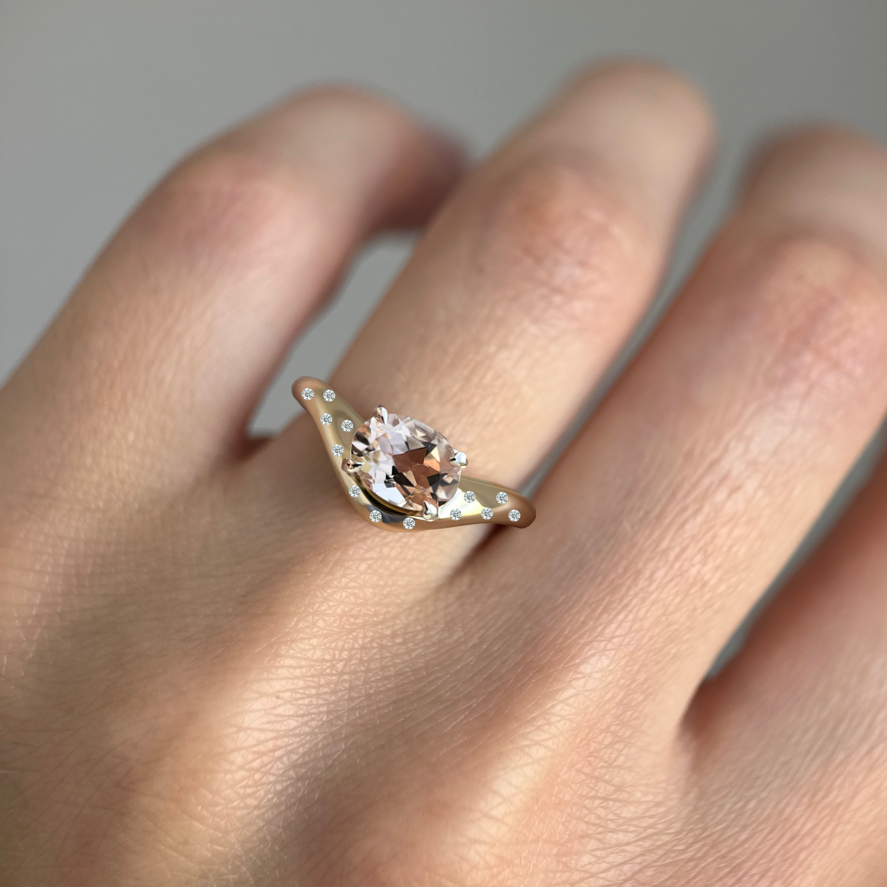 14K Yellow gold Caia ring with oval diamond and 13 x 1-1.05mm VS diamonds