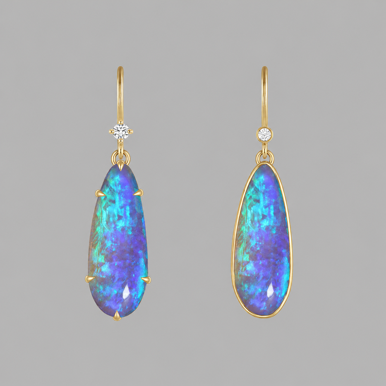 14K Yellow gold French wire earrings with Australian crystal opals and diamonds