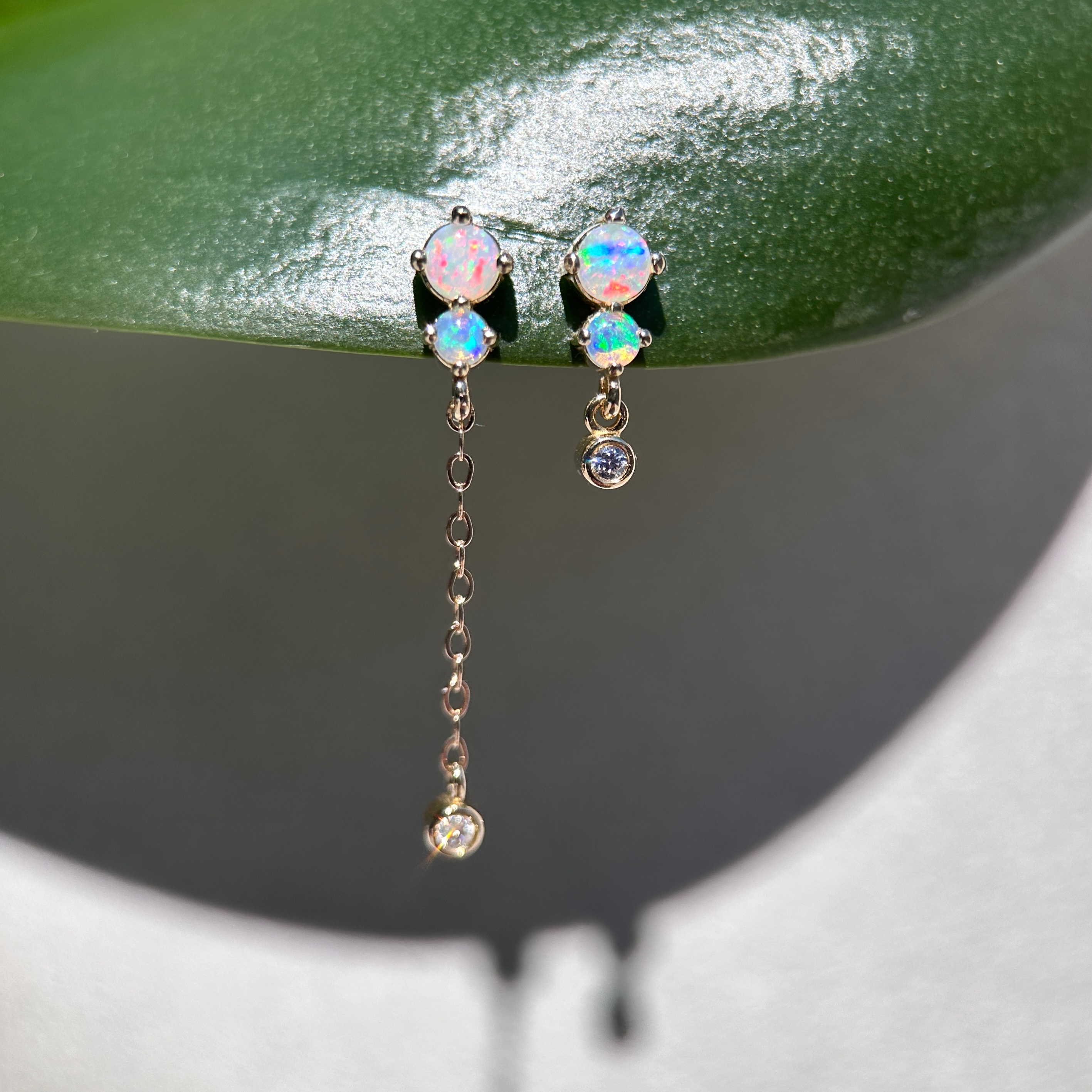 14K Yellow gold charm with Australian Crystal Opals & Diamond