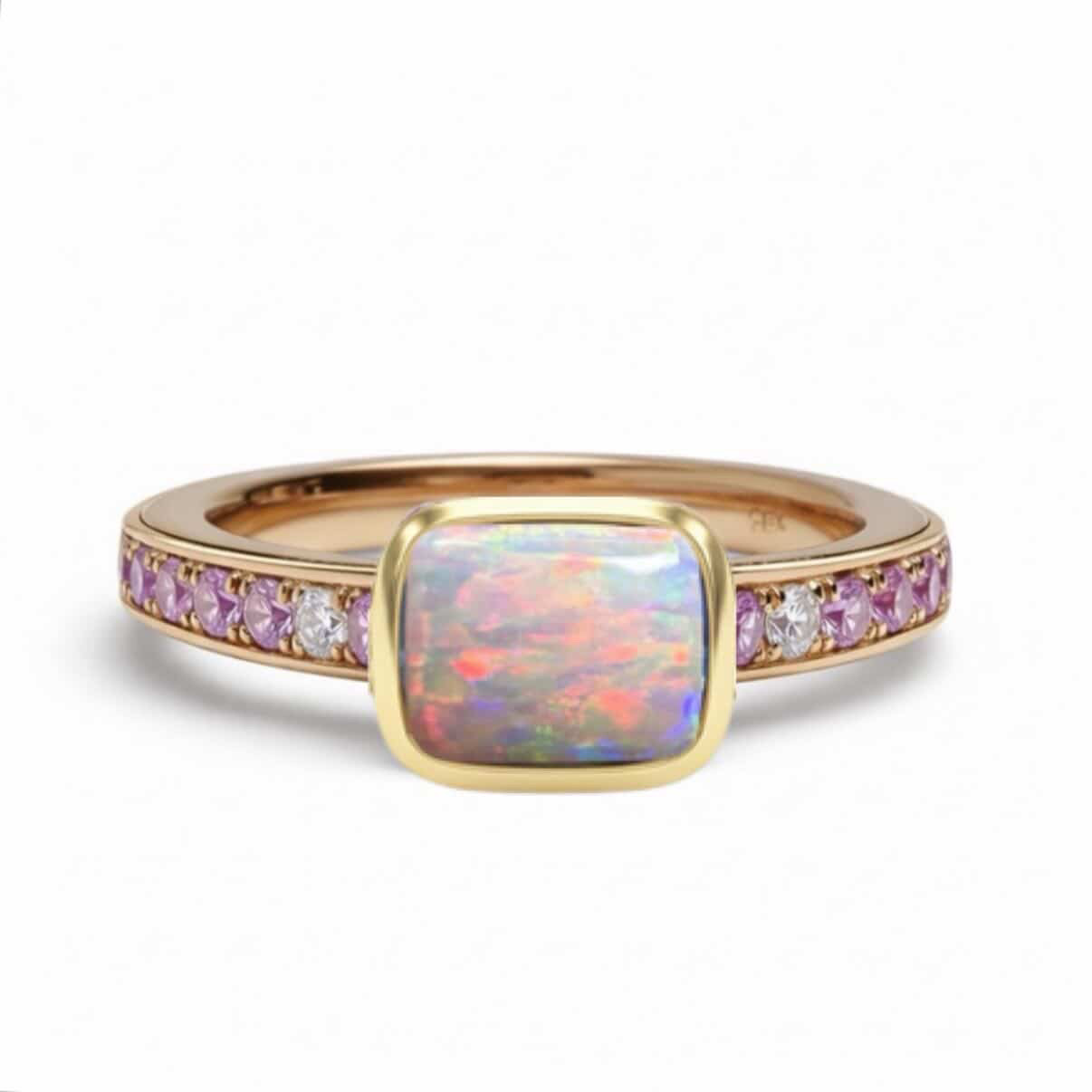 14K Yellow gold ring with Australian Opal & ombre pink sapphires