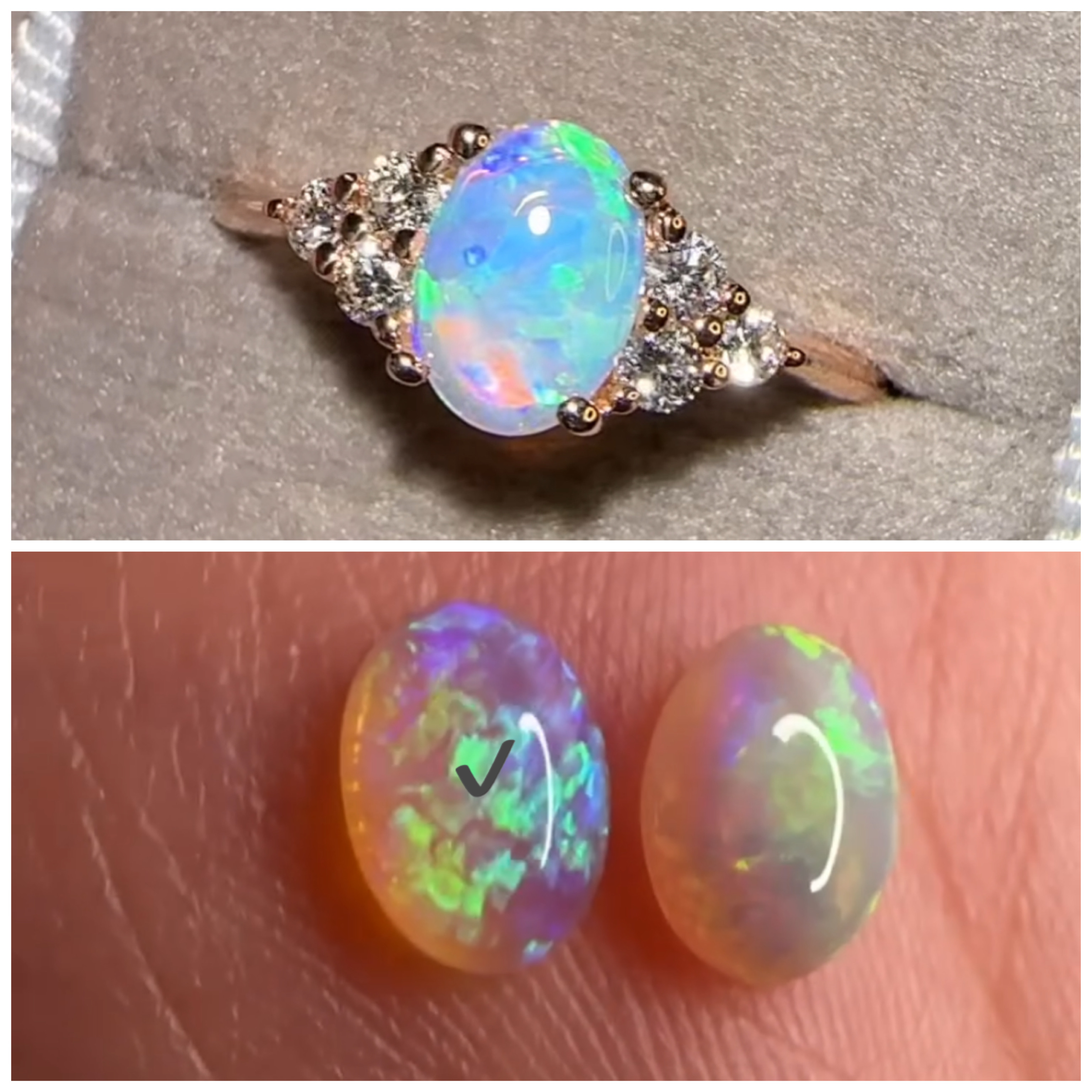 14K Rose gold ring with Australian Crystal Opal and diamonds