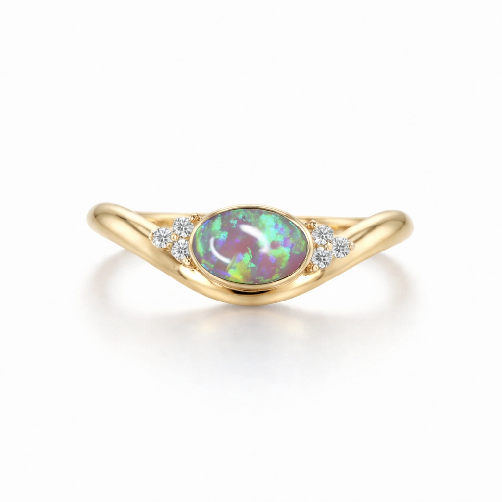 14K Yellow gold ring with Australian Crystal Opal and Diamonds