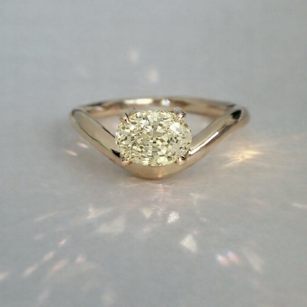 14K yellow gold Mini Caia ring with oval diamond