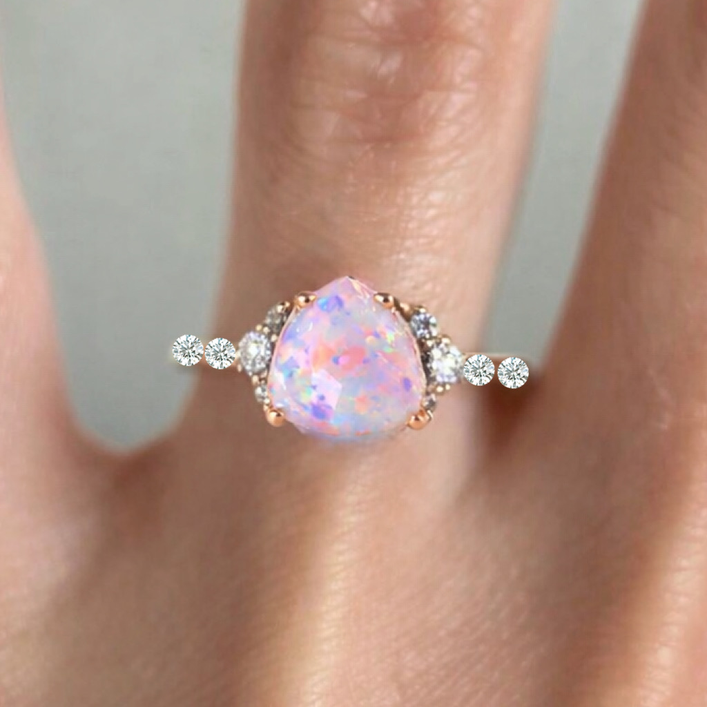 14K White gold ring with Australian Opal and diamonds (no rhodium plating)