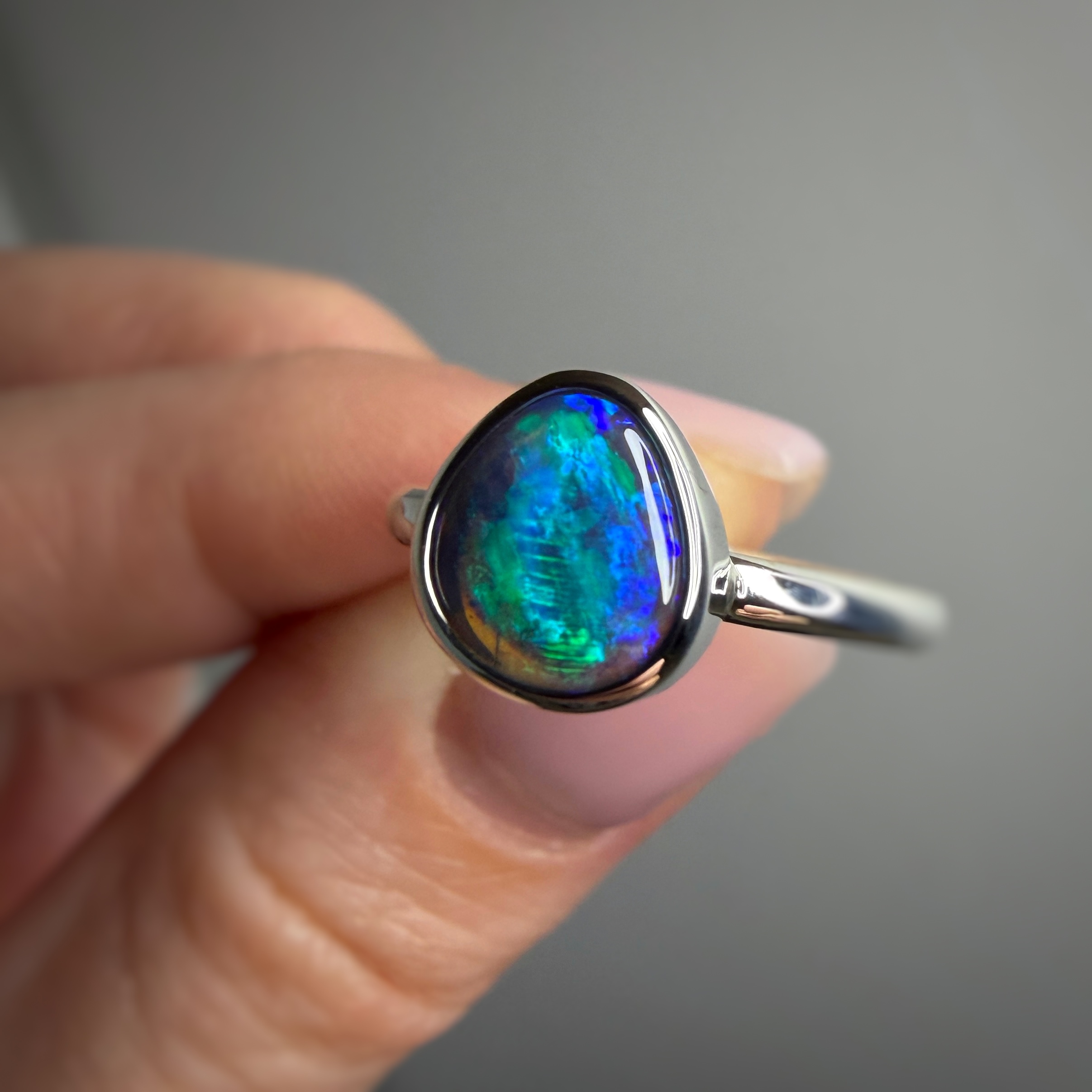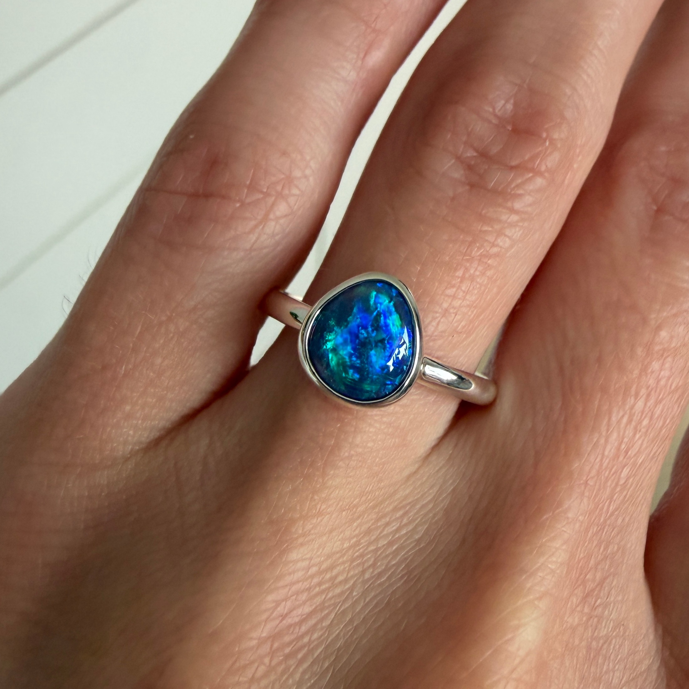 Sterling silver ring with Australian Black Crystal Opal